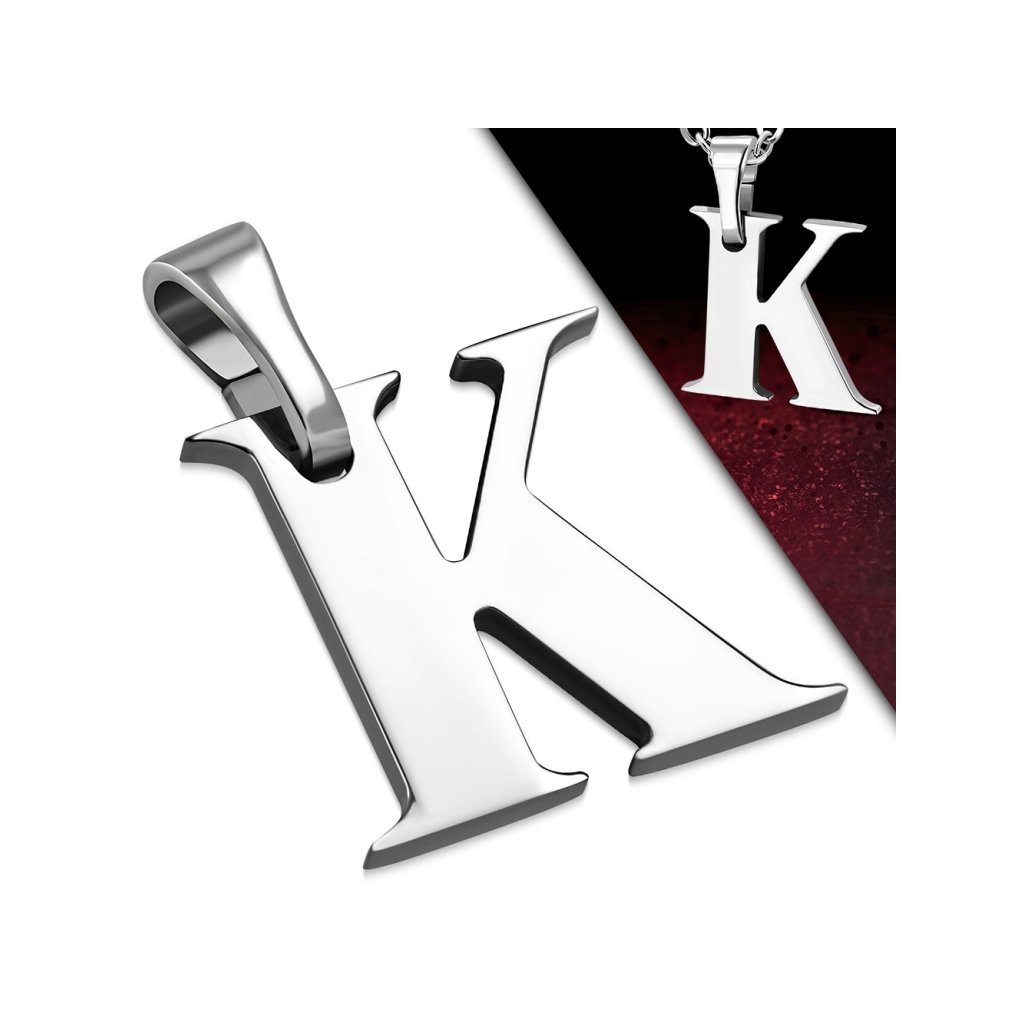 Nádherný prívesok písmeno K s retiazkou z chirurgickej ocele v striebornej farbe. Prívesky s písmenom sú veľmi obľúbeným šperkom bez rozdielu vekovej kategórie. Sú výborným módnym doplnkom pre dámy a pánov. Písmeno je stredné veľké a oživí každý outfit. Materiál retiazky aj prívesku je kvalitná chirurgická oceľ, ktorá je pevná a odolná, nekoroduje a nečerná. Pri jej nosení sa nemusíme báť žiadnej alergickej reakcie, keďže chirurgická oceľ je antialergická. Šperk je vhodný na bežné každodenné nosenie. Pri tomto šperku máte možnosť si vybrať vlastnú dĺžku retiazky ak Vám nevyhovuje jej základná dĺžka.