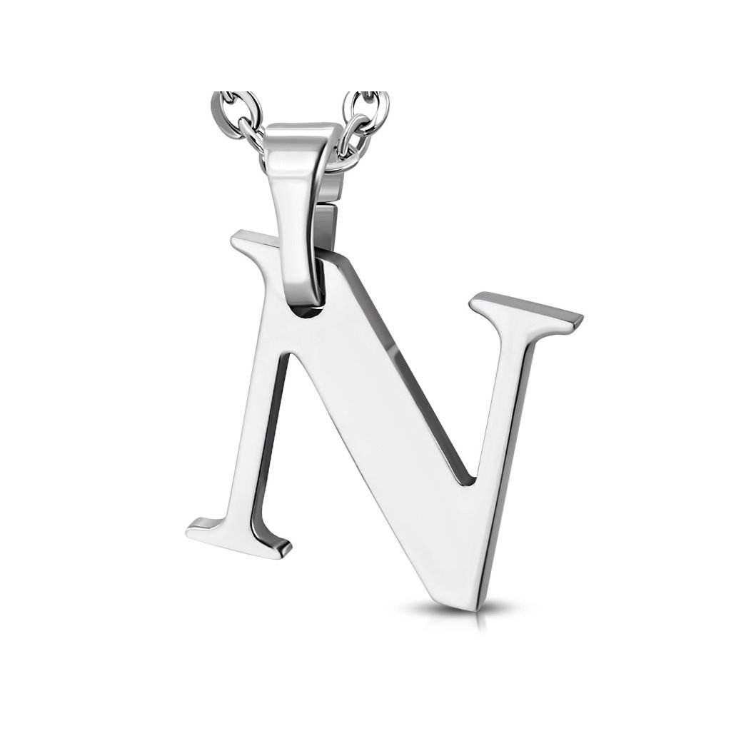 Retiazka s príveskom písmeno N z chirurgickej ocele - 1,7 cm + pri tomto produkte si môžete zvoliť dĺžku retiazky