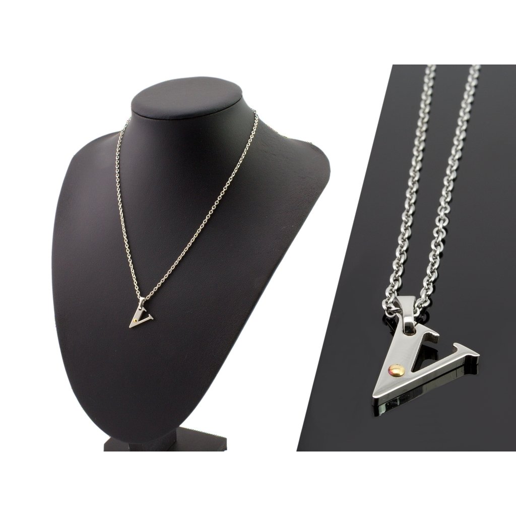 Retiazka aj prívesok v tvare písmenka "V" sú vyrobené z kvalitnej chirurgickej ocele v striebornom prevedení. Zapínanie retiazky je na karabínku a taktiež je vyhotovené z chirurgickej ocele. Zlaté očko v prívesku je pozlátené 18 karátovým zlatom a vytvára tak na prívesku atraktívny detail. Pri tomto prívesku máte možnosť zvoliť si dĺžku retiazky podľa Vašich potrieb. Materiál chirurgická oceľ nekoroduje a nesčernie Vám, ako je to bežné pri bižutérii či striebre. Zo šperku sa tak môžete tešiť veľmi dlho, zostane Vám stále rovnako krásny ako v deň, keď ste si ho zakúpili. Chirurgická oceľ je hypoalergénna a nevyžaduje si žiadnu špeciálnu starostlivosť.