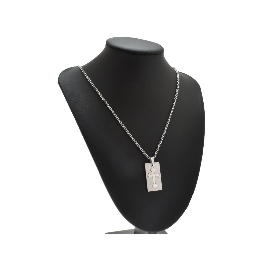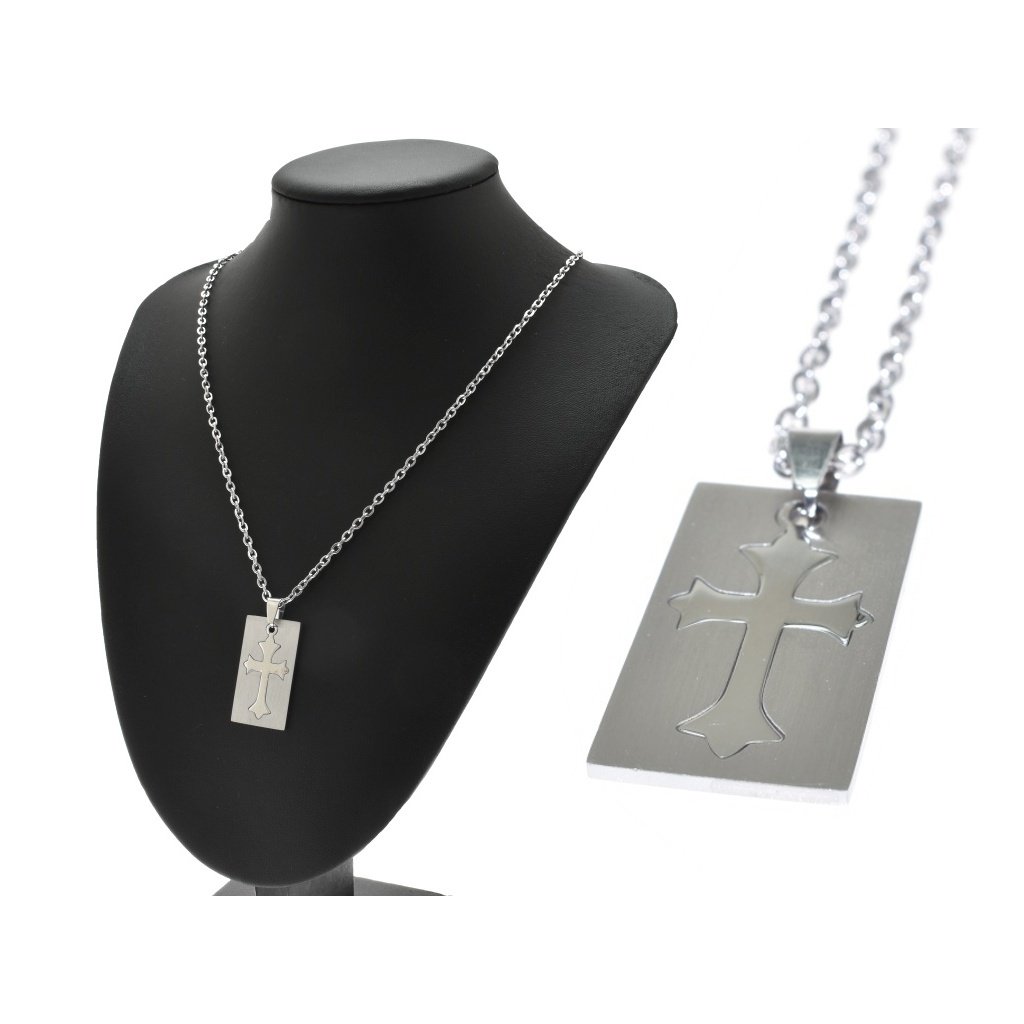 Jednoduchá pánska retiazka s platničkou v ktorej je vyrezaný kríž v striebornom prevedený. Platnička je v matnom prevedení vzhľadom surovej ocele a kríž v strede má vysoko leštení povrch čo dokopy dáva veľmi zaujímavý a krásny vzhľad. Tento šperk je určený pre všetky vekové kategórie a vhodný na každodenné nosenie.Retiazka a aj prívesok je vyrobený z kvalitnej chirurgickej ocele. Dĺžka retiazky je 60 cm s klasickým zapínaním na karabínku. Chirurgická oceľ nečerná a nekoroduje a aj bez špeciálnej starostlivosti Vám tento šperk z chirurgickej ocele vydrží veľmi dlho. Materiál chirurgická oceľ je hypoalergénny materiál. Pri tomto šperku si viete vybrať dĺžku retiazky ak Vám nevyhovuje jej základná dĺžka.