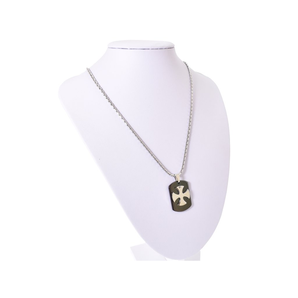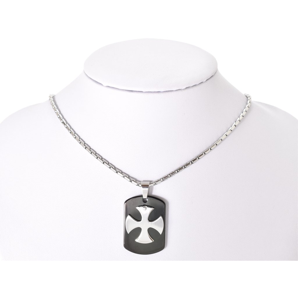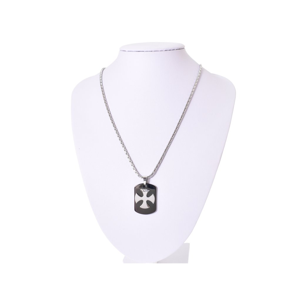 Retiazka aj príveskom maltézsky kríž sú vyrobené z kvalitnej chirurgickej ocele. Prívesok je zavesený na krásnej striebornej retiazke v dĺžke 54 cm. Tento šperk je vhodný pre mužov ale tak isto aj pre dámy čo majú v obľube šperky s platničkou.eľmi krásna retiazka s krásnym príveskom so symbolom maltézskeho kríža. V čiernej platničke je umiestnený strieborný maltézsky kríž, ktorý je uchytený v hornej časti a je pohyblivý. Symbol maltézsky kríž chráni nositeľa po stránke telesnej aj duševnej. Samotný maltézsky kríž symbolizuje oddanosť, štedrosť, slávu a česť.