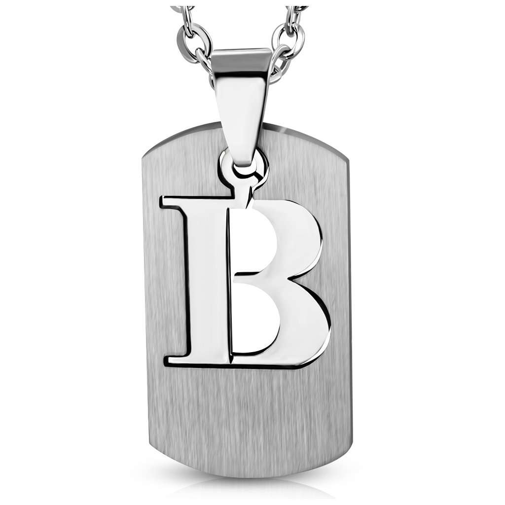 Retiazka z chirurgickej ocele s príveskom platničky s písmenom " B " 3 cm v striebornej farbe