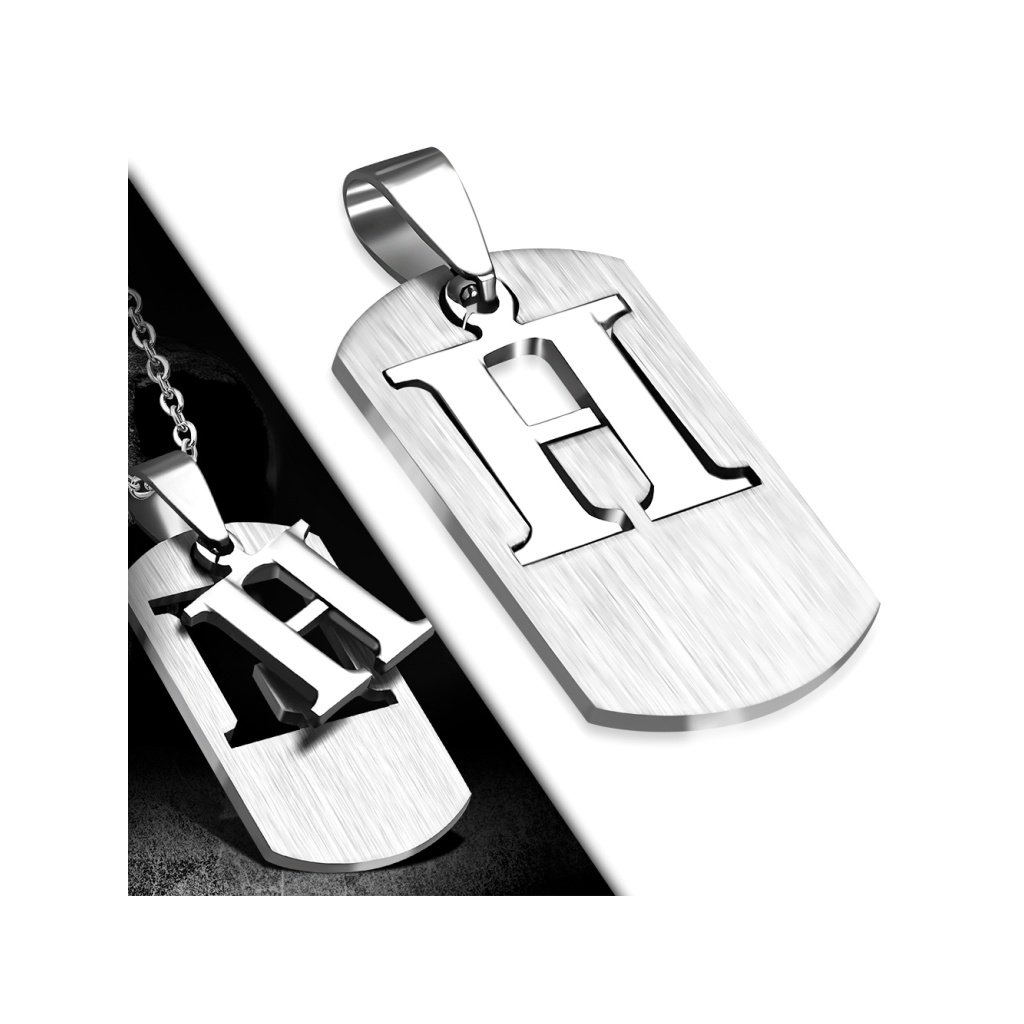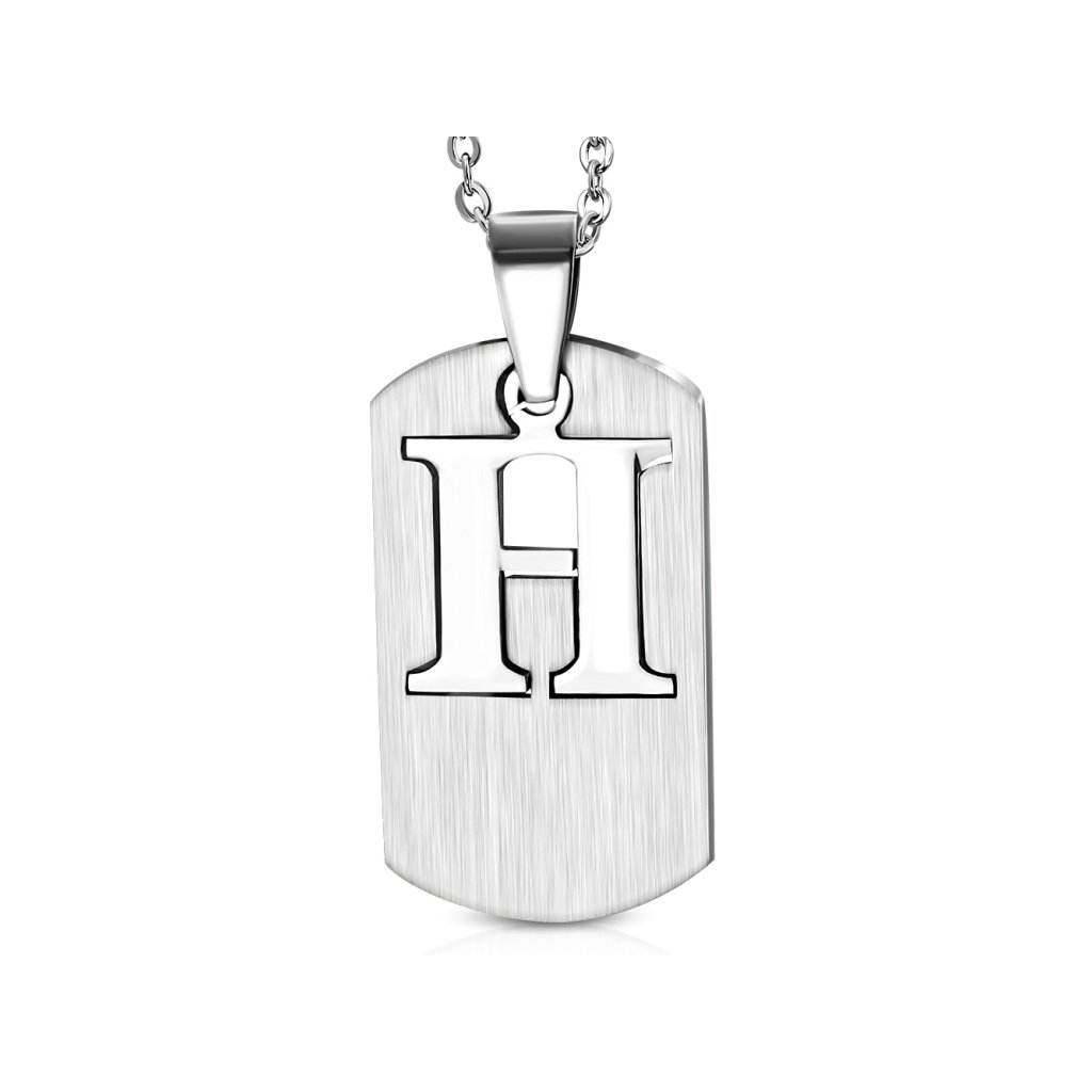 Retiazka z chirurgickej ocele s príveskom platnička s písmenom H - 3 cm v striebornej farbe