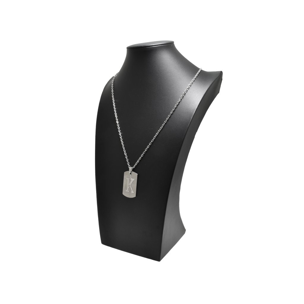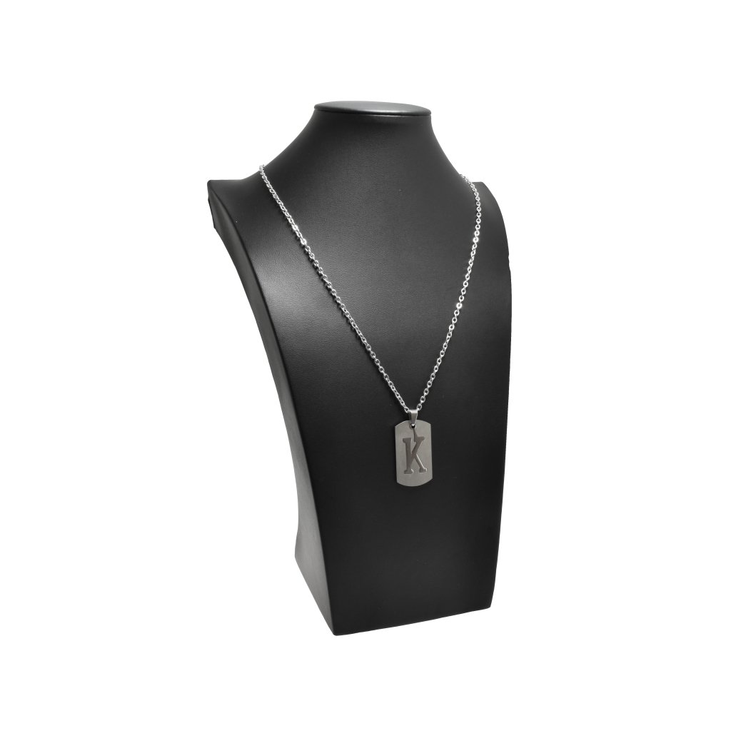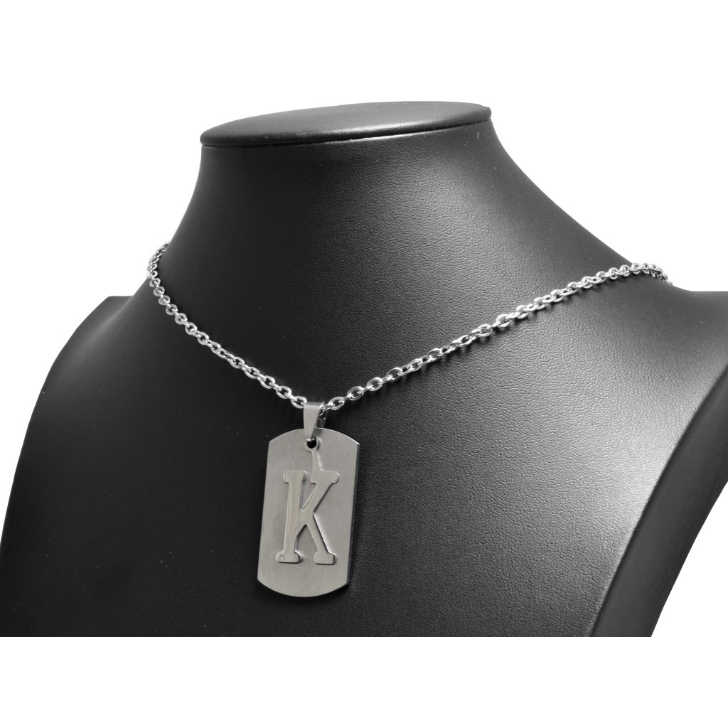 Krásna retiazka s príveskom platničky s veľkým písmenom "K" v striebornej farbe z chirurgickej ocele. Prívesky písmená sú veľmi obľúbené u každej vekovej kategórie. Šperk sa hodí ako pre ženu, tak aj pre muža. Je vyrobený celý z chirurgickej ocele a zapínanie retiazky je na klasickú karabínku. Táto retiazka s príveskom je vhodná aj ako darček a taktiež na každodenné nosenie. Pri tomto produkte máte možnosť si zvoliť dĺžku retiazky podľa vlastnej potreby.