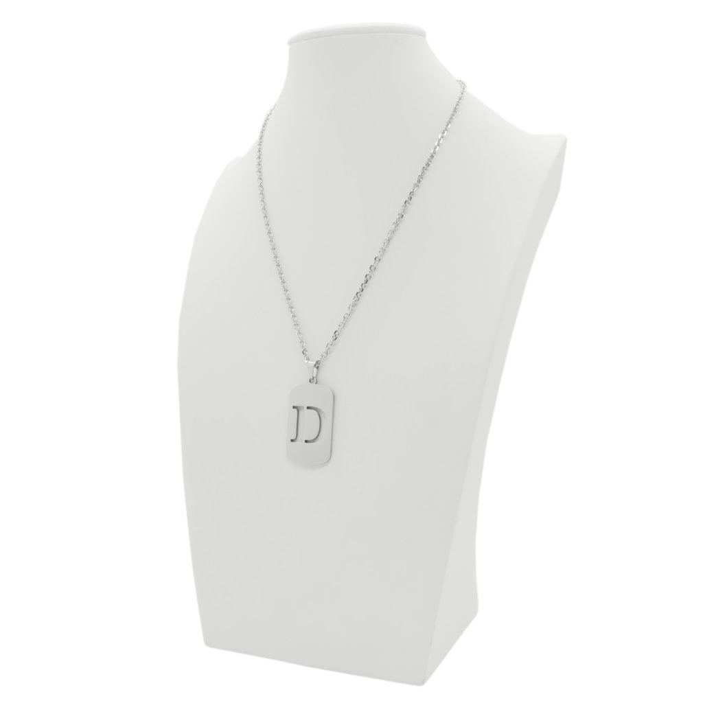 Elegantná a jednoduchá retiazka s príveskom v tvare platničky a vyrezaným písmenom "D" z chirurgickej ocele je ideálnym doplnkom pre každodenné nosenie. Tento šperk kombinuje moderný dizajn s odolným a hypoalergénnym materiálom, ktorý je šetrný k pokožke a zároveň dlhotrvajúci.