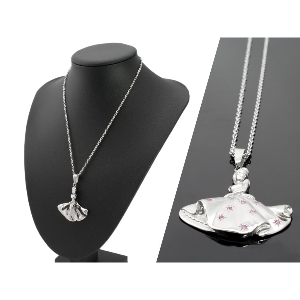 Retiazka s romantickým príveskom princezná z chirurgickej ocele strieborná. Na prívesku princezná sú šaty ozdobené očkami z kubického zirkónu ružovej farby. Veľmi krásny romantický šperk určený predovšetkým pre mladé dámy s romantickou dušou. Ak Vám nevyhovuje dĺžka retiazky, pri tomto šperku máte na výber dĺžku retiazky podľa seba.