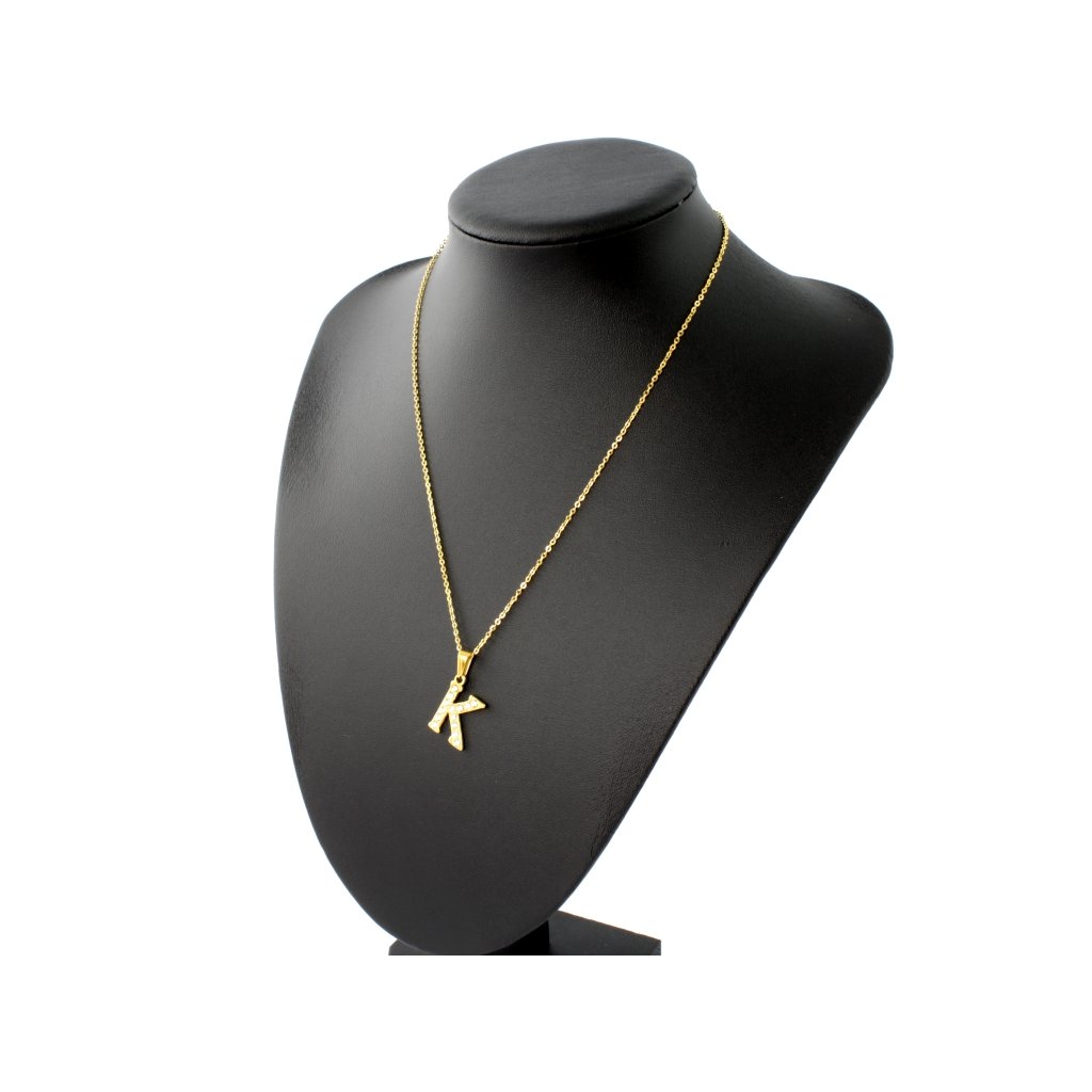 Retiazka s príveskom písmena " K " z chirurgickej ocele stredná (veľkosť 2 cm) v zlatej farbe s očkami z kubického zirkónu. Klasika, ktorá je stále v móde a je veľmi obľúbená. Táto retiazka je určená na bežné každodenné nosenie a pre všetky vekové kategórie. Ak Vám nevyhovuje dĺžky retiazky, pri tomto produkte si zvoliť Vami požadovanú dĺžku.
