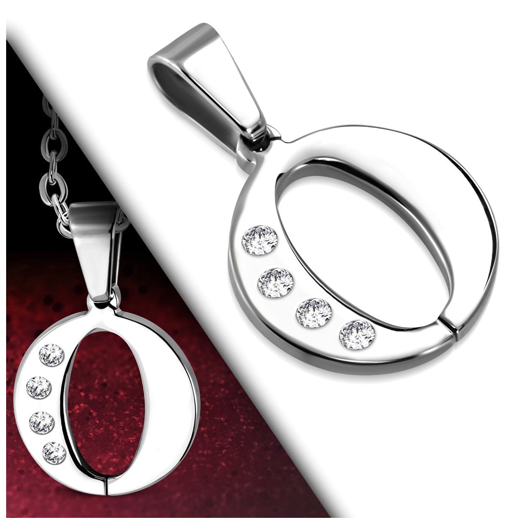 Retiazka s príveskom z chirurgickej ocele v tvare písmena " O " strieborné s očkami - veľkosť 1,8 cm