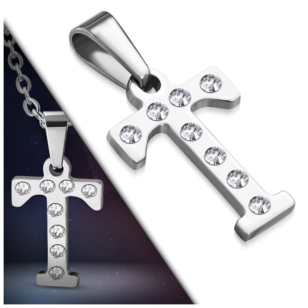 Retiazka s príveskom písmena " T " z chirurgickej ocele vykladané s očkami čírej farby z kubického zirkónu. Klasika, ktorá je stále v móde a je veľmi obľúbená. Táto retiazka je určená na bežné každodenné nosenie a pre všetky vekové kategórie. Ak Vám nevyhovuje dĺžka retiazky, pri tomto šperku máte na výber dĺžku retiazky podľa seba.