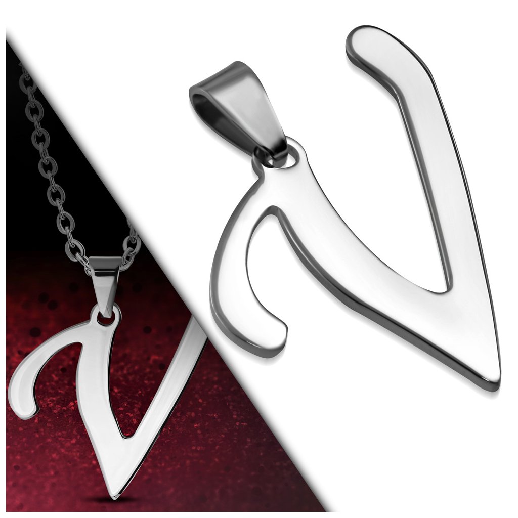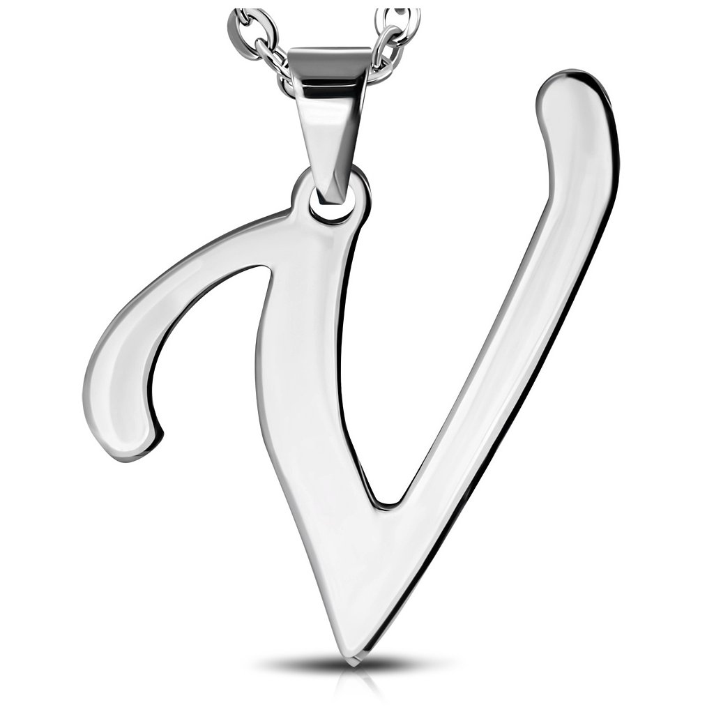 Retiazka s príveskom písmena " V " z chirurgickej ocele veľké (veľkosť 3 cm x 3,3 cm). Jednoduchý model, ktorý je stále v móde. Ako darček určite poteší. Táto retiazka je určená na bežné každodenné nosenie a pre všetky vekové kategórie. Pri tomto šperku máte možnosť si vybrať vlastnú dĺžku retiazky ak Vám nevyhovuje jej základná dĺžka.