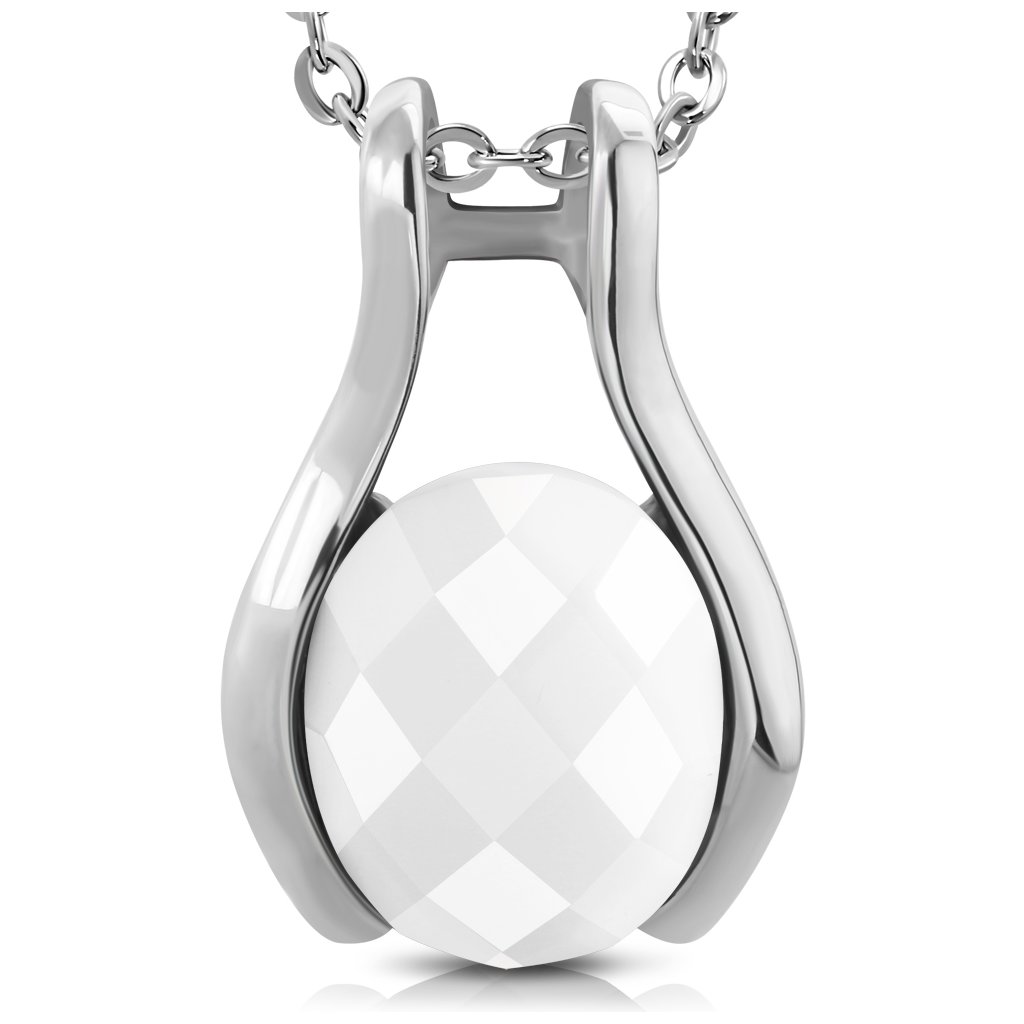 Prívesok s bielym brúseným očkom s retiazkou z chirurgickej ocele