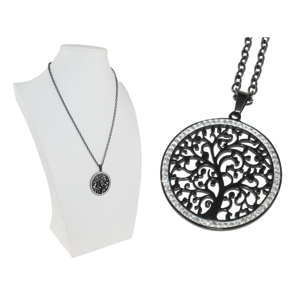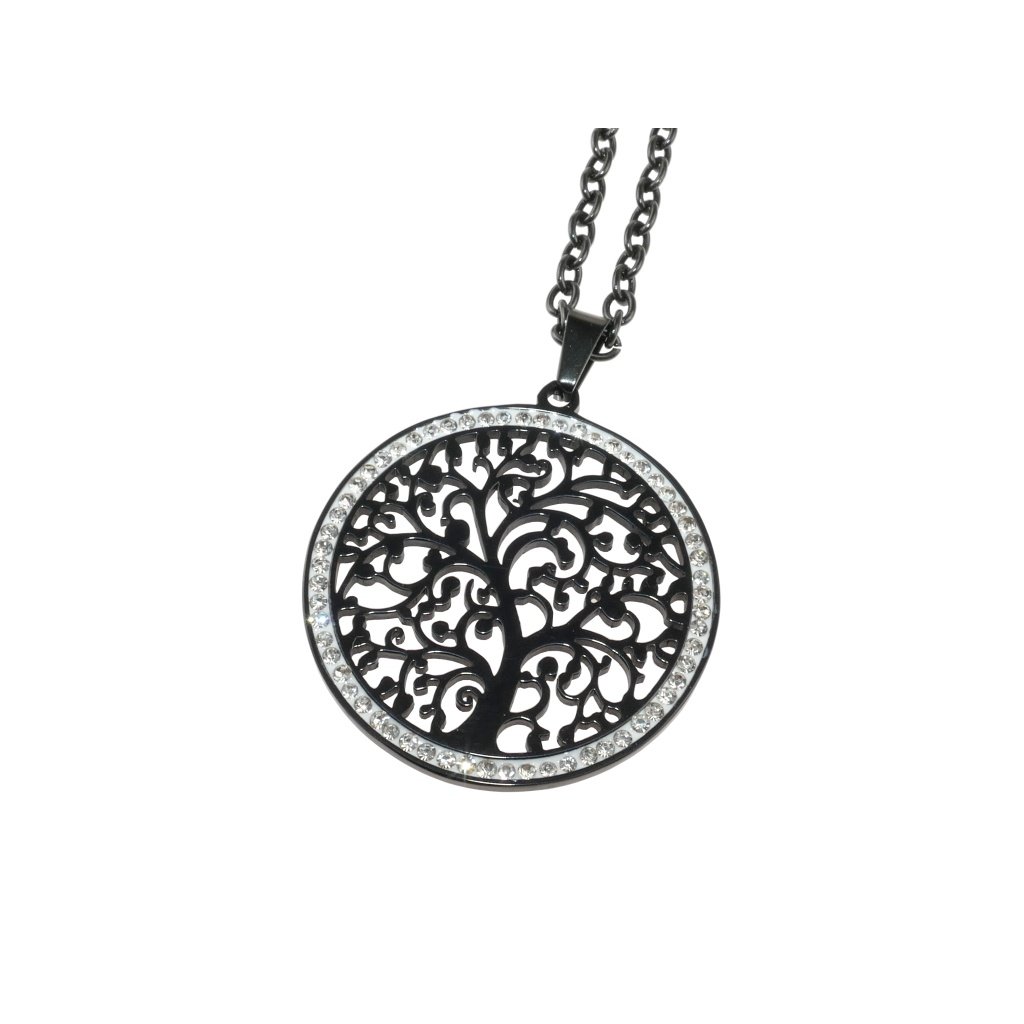 Krásna retiazka s príveskom so symbolom Strom života . Tento symbol stromu života sa v súčasnosti teší veľkej popularite. Retiazka aj prívesok sú vyrobené z kvalitnej chirurgickej ocele s čiernou povrchovou úpravou. Strom života symbolizuje jednotu a vzájomné prepojenie všetkého živého. Strom nájdeme v mytológii a v náboženstvách po celom svete. Strom je silný pozitívny ochranný symbol. Vedeli to už starí druidi, ktorí využívali ich ochrannú moc pri svojich magických rituáloch. Široký rozkošatený dub je praveký symbol Slovanov. Strom života je univerzálny ochranný symbol. Šperk so stromom života je vhodný na bežné nosenie pre dámy aj pre pánov a pre všetky vekové kategórie. Prívesok má vysoko leštenú úpravu a nádherný lesk.