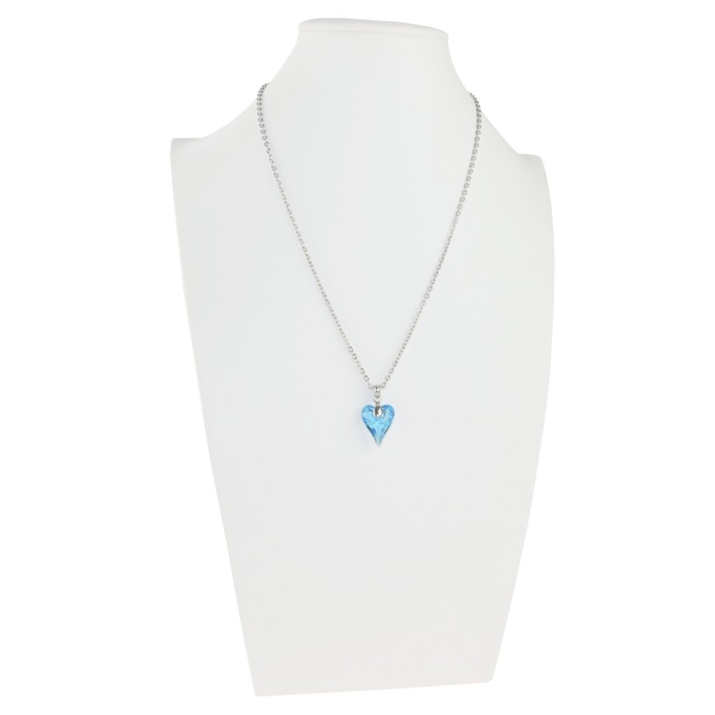 Retiazka s príveskom so srdiečkom. Srdiečko patrí medzi romantické dámske prívesky. Srdiečko je krásny darček nie len na Valentina a na každú príležitosť. Prívesok v Swarovski v tvare Wild Heart vyniká svojim zaujímavým tvarom a tak isto jedinečnou farbou Aquamerine (modrá ) . Swarovski šperky majú jedinečný výbrus a pri lome svetelných lúčov hrajú neuveriteľnými odtieňmi a farbami. Šperk je vhodný tak na rôzne príležitosti a samozrejme dá sa kombinovať a aj s náušnicami Swarovski. Retiazka a samozrejme všetky kovové časti na šperku sú z kvalitnej chirurgickej ocele.