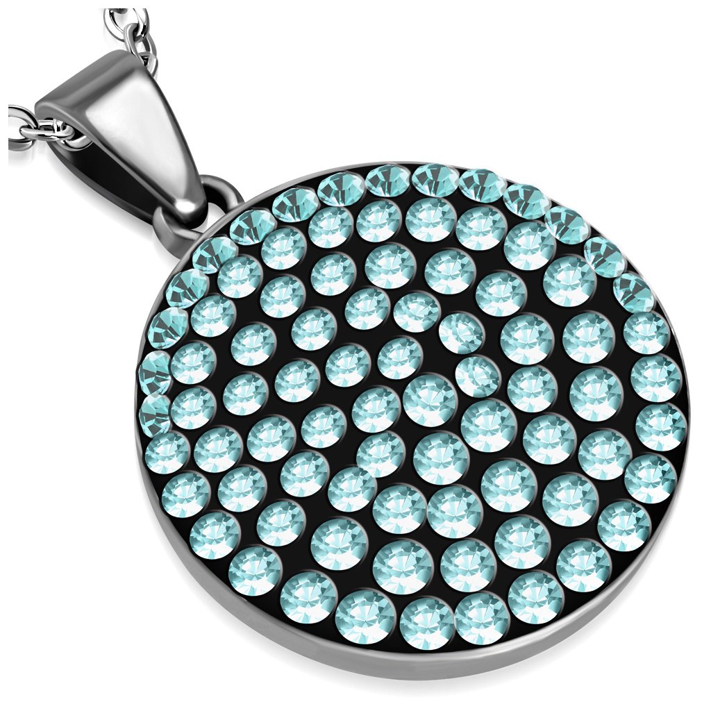 Prívesok v tvare kruhu s očkami z kubického zirkónu vo farbe Akvamarín s retiazkou z chirurgickej ocele
