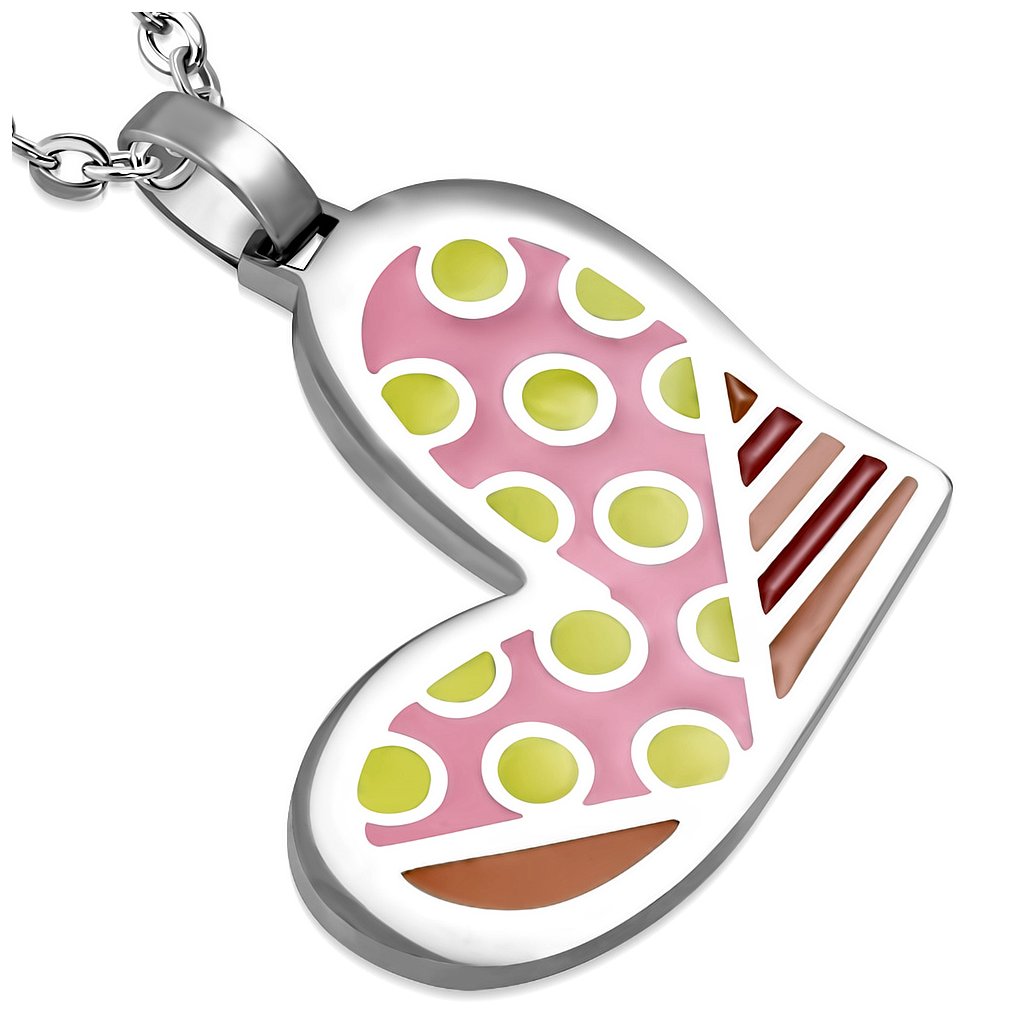 Retiazka s príveskom z chirurgickej ocele v tvare farebného veľkého srdiečka.Vyfarbený smaltovými farbami , ktoré zaručujú trvácnosť a lesk. Materiál, z ktorého je prívesok vyrobený, mu zaručí dlhú životnosť. Základná dĺžka retiazky je 55 cm. Z viacerých možných variantov si viete vybrať vhodnú dĺžku retiazky už podľa Vašich individuálnych potrieb. Smaltové farby použité na prívesku zaručia jeho veľmi jednoduchú kombinovateľnosť. Vhodný je pre všetky vekové kategórie.