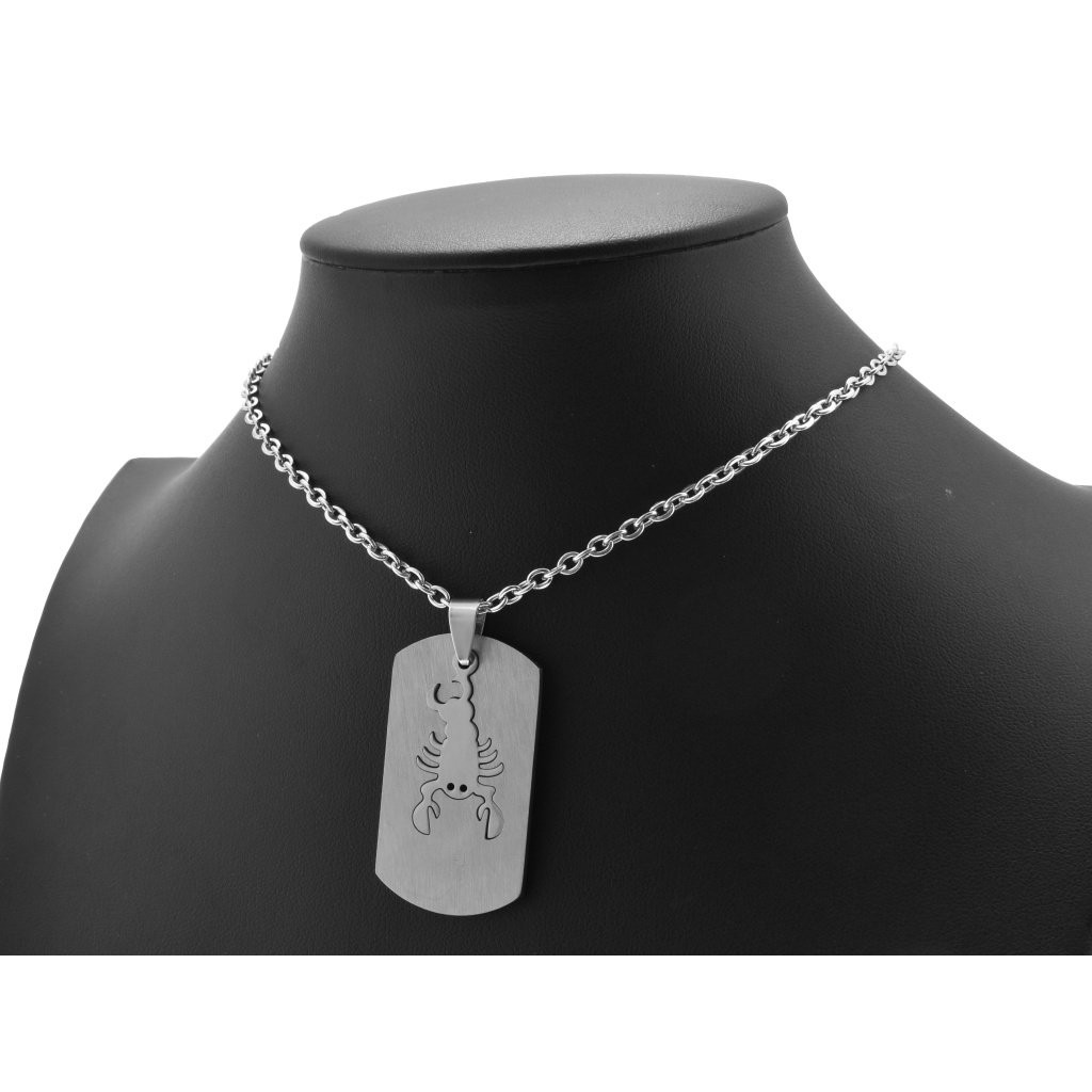 Pánsky prívesok v tvare platničky vyrobený z chirurgickej ocele. Platnička má vzor surovej ocele, čo ocenia najmä páni, ktorí preferujú drsný štýl šperkov. V strede je pohyblivý škorpión z vysoko leštenej ocele. Tento kontrast pôsobí veľmi moderne a štýlovo. Prívesok je vhodný pre ľudí narodených v znamení Škorpión od 23.10 do 22.11. Ľudia v tomto znamení sú tvrdohlaví a nebojácni, disponujú dobrým logickým myslením.Retiazka aj prívesok sú vyrobené z kvalitného materiálu - z chirurgickej ocele. Tá zaručí Vášmu šperku dlhú živostnosť, pretože nekoroduje ani nečerná a stále si udržiava svoj lesk. Oceľové šperky sú vhodné na bežné každodenné nosenie, pretože sú antialergické. Medzi jej ďalšie výhody patrí to, že nepotrebuje žiadnu špeciálnu starostlivosť. Pri tomto produkte si viete vybrať dĺžku retiazky ak Vám nevyhovuje jej základná dĺžka.