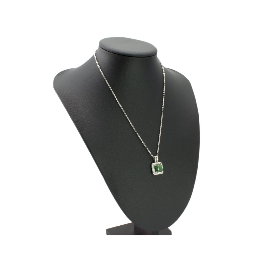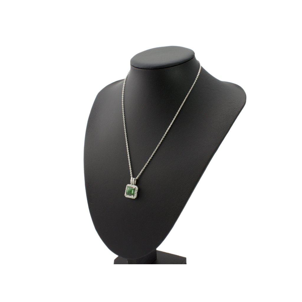 Retiazka je vyrobená z kvalitnej chirurgickej ocele. Zapínanie retiazky je na klasickú karabínku. Prívesok a záves na retiazku je vykladaný malými očkami z kubického zirkónu. Všetky kovové časti prívesku sú taktiež z kvalitnej chirurgickej ocele. Očko z polodrahokamu je v tvare štvorca s rozmermi 10 mm x 10 mm. Nakoľko všetky kovové časti sú z chirurgickej ocele ktorá nekoroduje a nemení farbu, ako iné materiály ako napríklad bižutéria či striebro.
