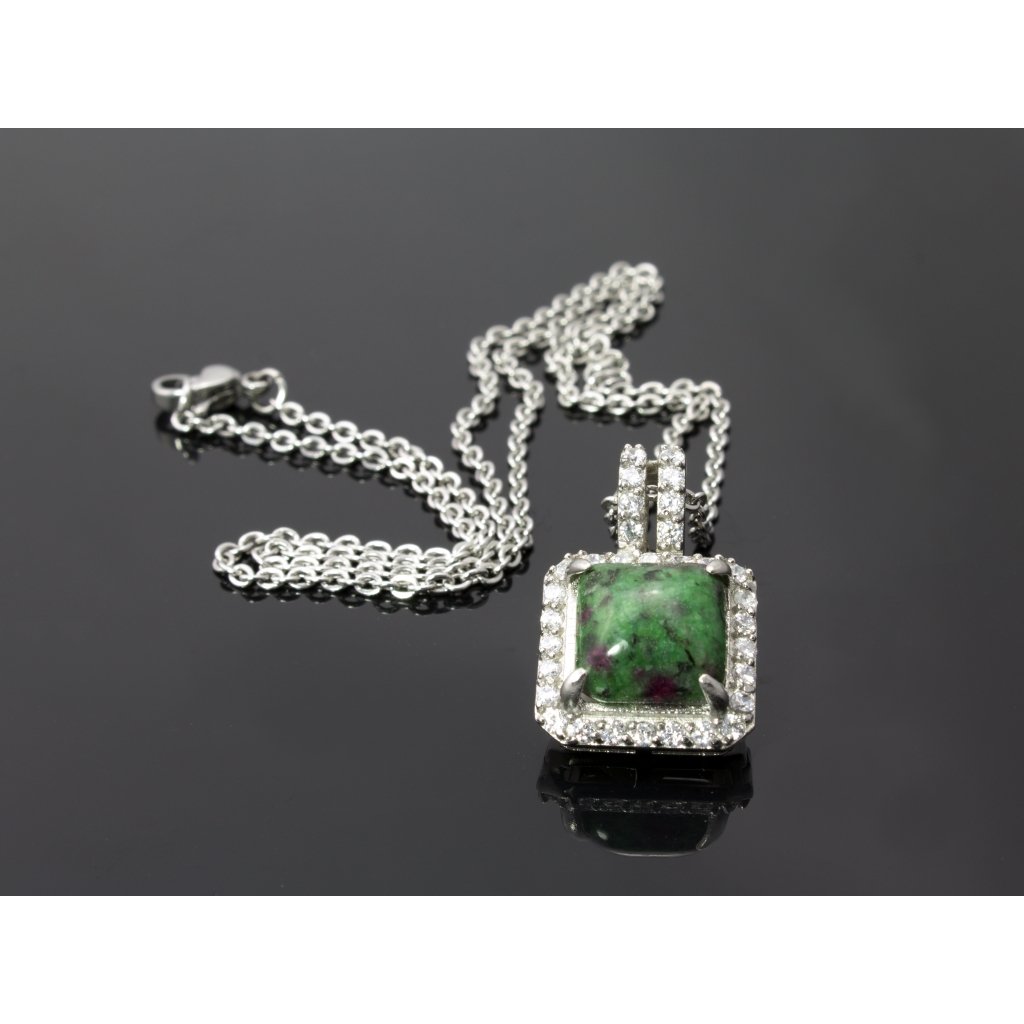 Retiazka s príveskom z polodrahokamu rubín v zoisite v jeho typickej zelenej farbe so škvrnami purpurovej farby. Veľmi krásny a romantický prívesok vhodný na bežné nosenie ale taktiež sa dá krásne doladiť ak k slávnostnejšiemu outfitu. Z mystických vlastností toho polodrahokamu zlepšuje psychické schopnosti schopnosť rozhodovať a konať podľa vlastných rozhodnutí, dodáva energiu pustiť sa do vecí a dosiahnuť želaného výsledku.