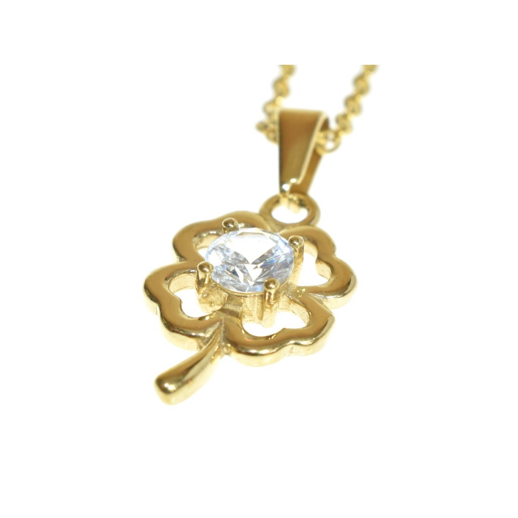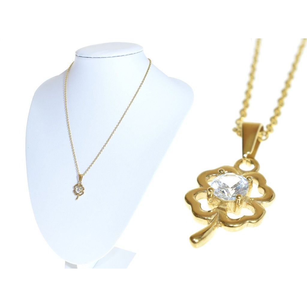 Retiazka s príveskom štvorlístok je vyrobená celá z kvalitnej chirurgickej ocele. Očko v strede prívesku je z kubického zirkónu vo výbruse diamantu v čírej farby. Chirurgická oceľ nekoroduje a je hypoalergénna. Ak Vám pri tomto produkte nevyhovuje základná dĺžka retiazky, môžete si ju zvoliť podľa seba.