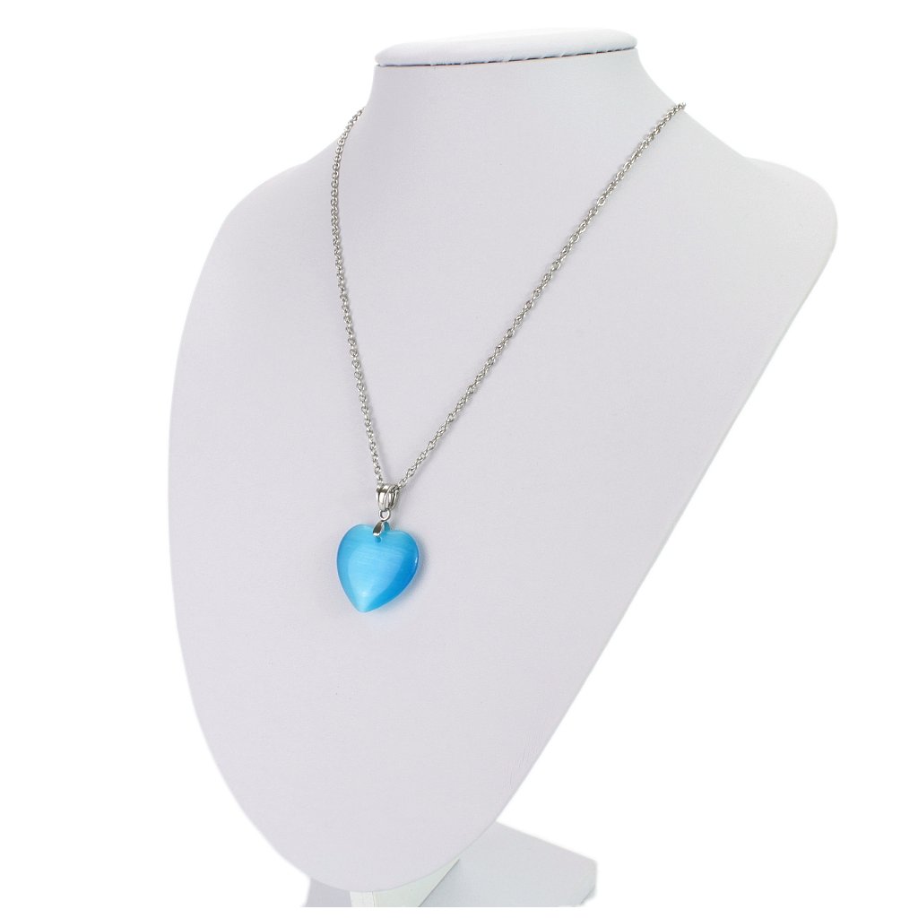 Retiazka z chirurgickej ocele s príveskom srdce z polodrahokamu Mačacie oko - Modré