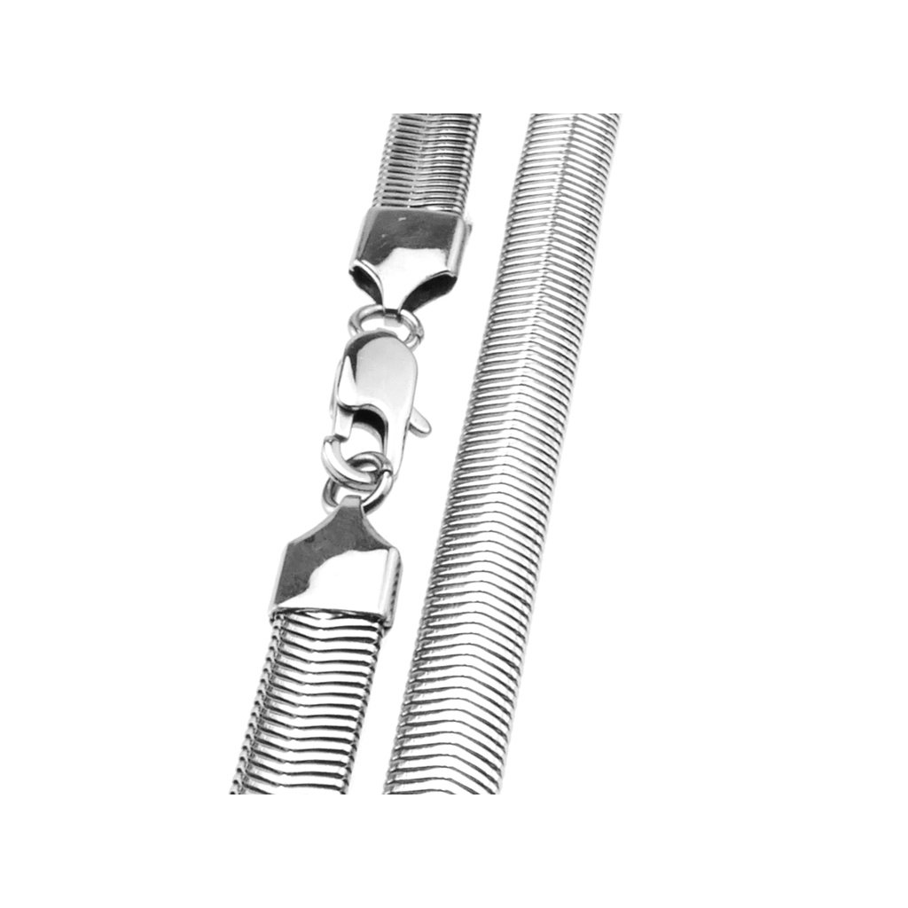 Dámska retiazka s hadím vzorom z chirurgickej ocele. Tento vzor je veľmi populárny a môžete si vybrať z jeho rôznych hrúbok, konkrétne táto je 8 mm hrubá. Je to nádherný výrazný šperk, vhodný pre všetky vekové kategórie. Retiazka je vhodná na každodenne nosenie, a keďže je z kvalitnej chirurgickej ocele má dlhú životnosť. Zapínanie je na klasickú karabínku.