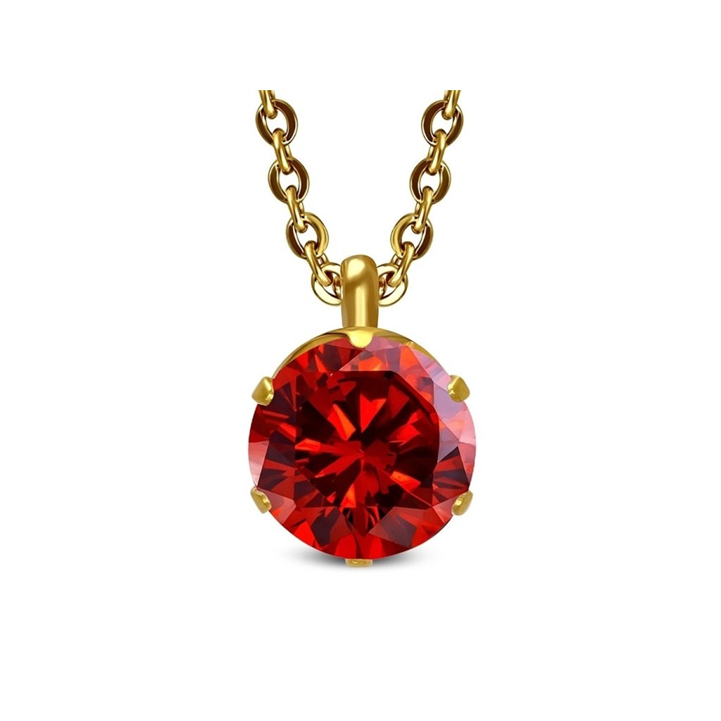 Dámska retiazka s príveskom červenej farby z chirurgickej ocele. Okrúhly prívesok tvorí brúsené očko červenej farby o priemere 10 mm. Šperk pôsobí jemne a vďaka diamantovému výbrusu sa prívesok nádherne trbliece a vytvára prekrásne svetelné efekty. Vďaka tomu pôsobí ako decentná, no výrazná ozdoba vášho dekoltu. Všetky kovové časti sú vyrobené z chirurgickej ocele, ktorá zaručuje dlhú živostnosť šperku. Oceľ je antialergická, čo býva veľmi rozhodujúci faktor najmä pri výbere šperkov. Retiazka ma zapínanie na klasickú karabínku.