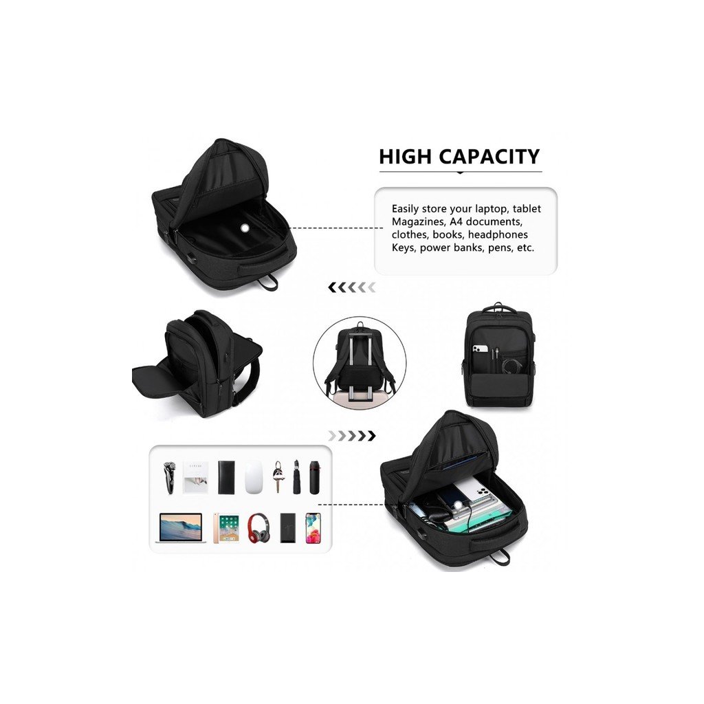 doplnky. Ruksak má hlavnú priehradku a jednu prednú. Obe sa uzatvárajú zipsom. Množstvo priehradok uschová dokumenty, notebook, tablet, písacie potreby a rôzne iné dôležité pracovné veci. Pri cestovaní sa dá uchytiť o kufor a pohodlne sa nosí vystuženými popruhmi na ramenách. Ruksak disponuje aj s USB portom.