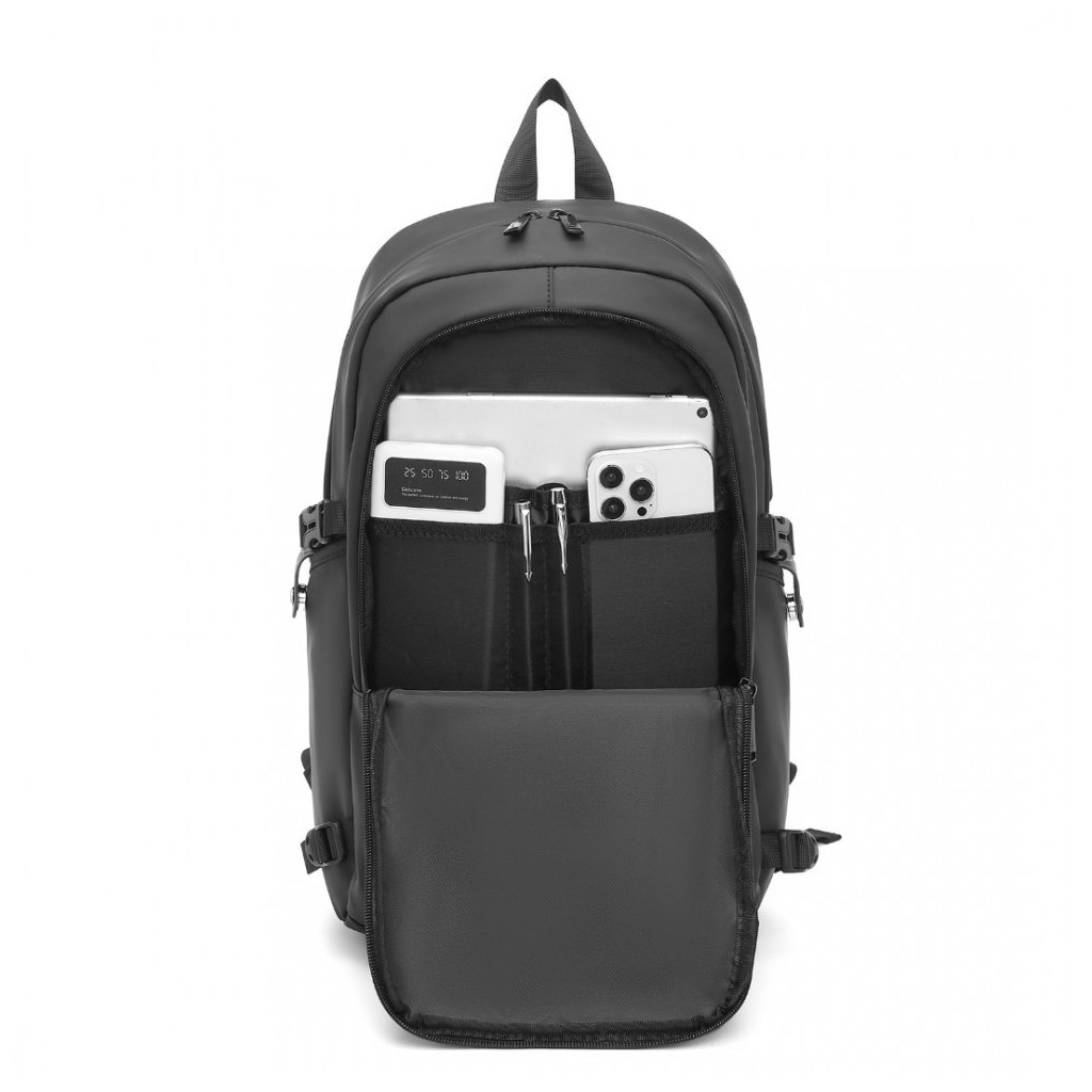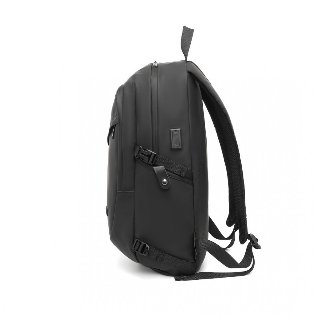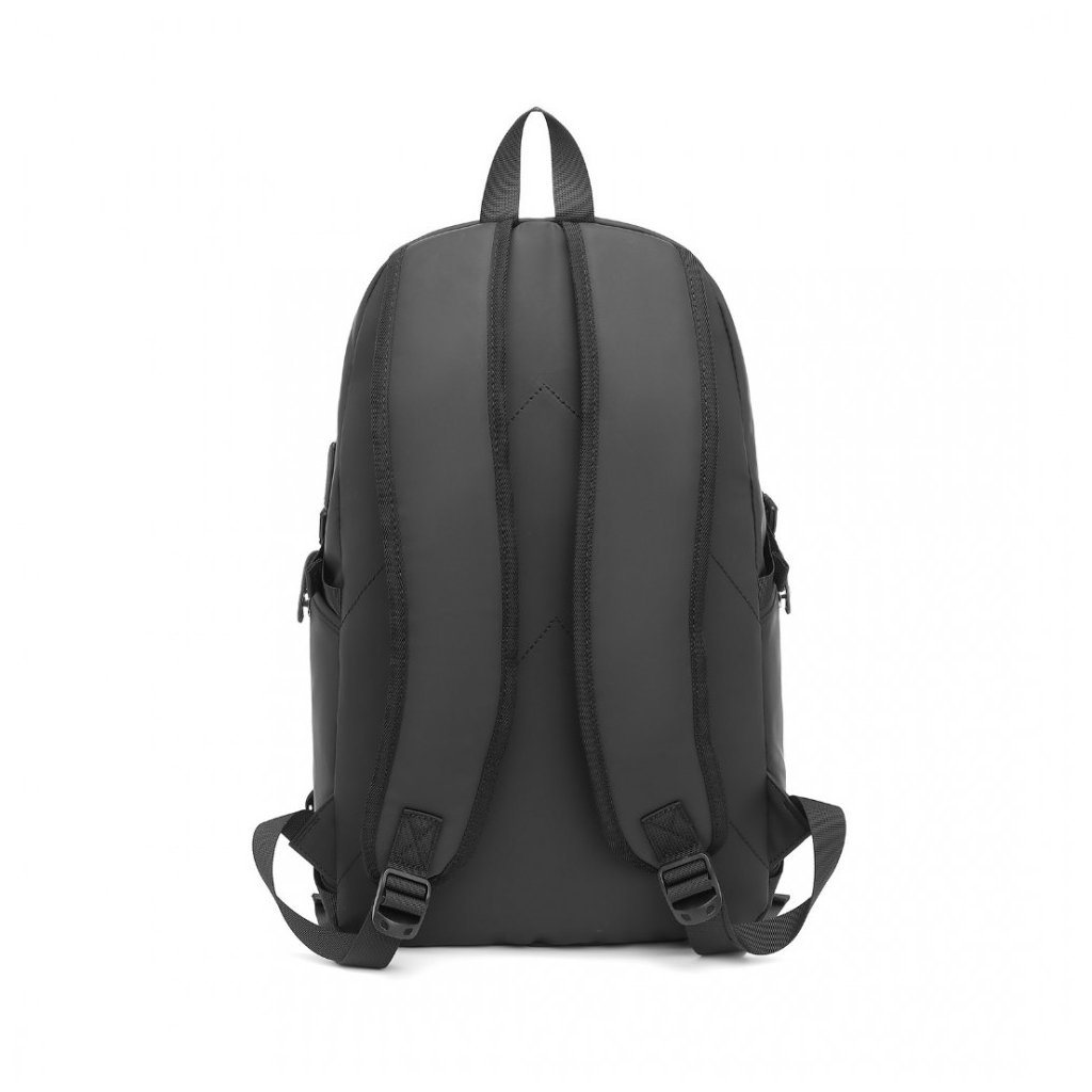 Tento čierny batoh vyrobený z pevnej tkaniny s PVC povrchom ponúka nielen elegantný dizajn, ale aj praktickú funkčnosť, ktorá zaručuje odolnosť voči vode a ochranu vašich vecí. Poskytuje dostatok miesta na notebook, elektroniku a ďalšie vybavenie, pričom vďaka špeciálnym priehradkám s možnosťou fixácie zabezpečuje ich bezpečné uloženie. Jednou z hlavných výhod tohto batohu je USB pripojenie pre externú batériu, ktoré umožňuje nabíjanie vašich zariadení na cestách, a to bez kompromisov v pohodlí. Vystužené nastaviteľné popruhy cez ramená zaručujú komfort aj pri dlhšom nosení.