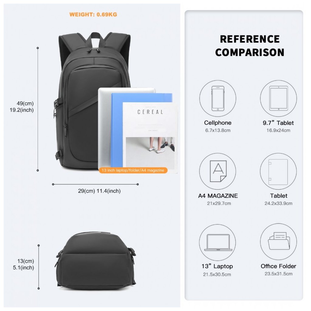 Jeho minimalistický, ale zároveň funkčný dizajn robí z tohto batohu ideálneho spoločníka pre moderných mestských profesionálov, ktorí vyžadujú kombináciu štýlu a technológie. Zvoľte si tento čierny batoh a užite si maximálnu praktickosť s nádychom moderného dizajnu.