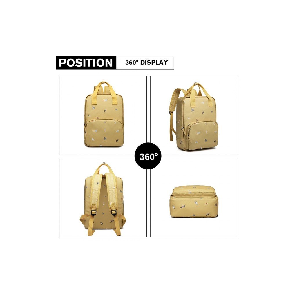 Veselý dizajn so psíkmi tohto ruksaku naozaj oceníte. Batoh je z pevne tkanej textílie s povrchovou nepremokavou úpravou v matnom prevedení. Vnútro je priestranné, vhodné pre knihy, zošity, a dokonca aj pre notebook 13,3''. Notebook hravo vložíte do vystuženej priehradky. Pohodlne sa nosí popruhmi na ramenách.