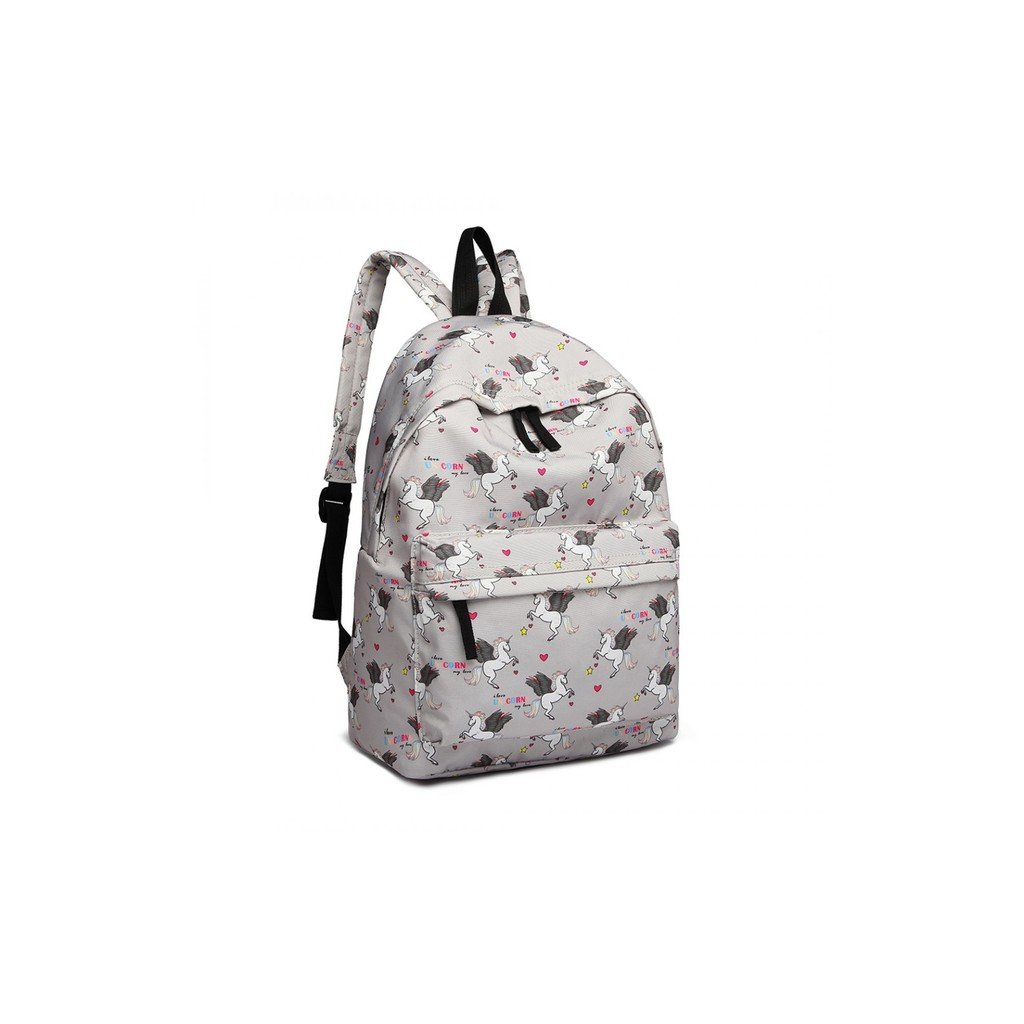 Dievčenský dizajn tohto ruksaku naozaj oceníte. Batoh je ladený v detskom štýle s jednorožcami. Batoh je z pevného polyesterového materiálu. Vnútro je priestranné, vhodné pre knihy, zošity, a dokonca aj pre notebook 13,3''. Pohodlne sa nosí popruhmi na ramenách a uzatvára sa zipsom.