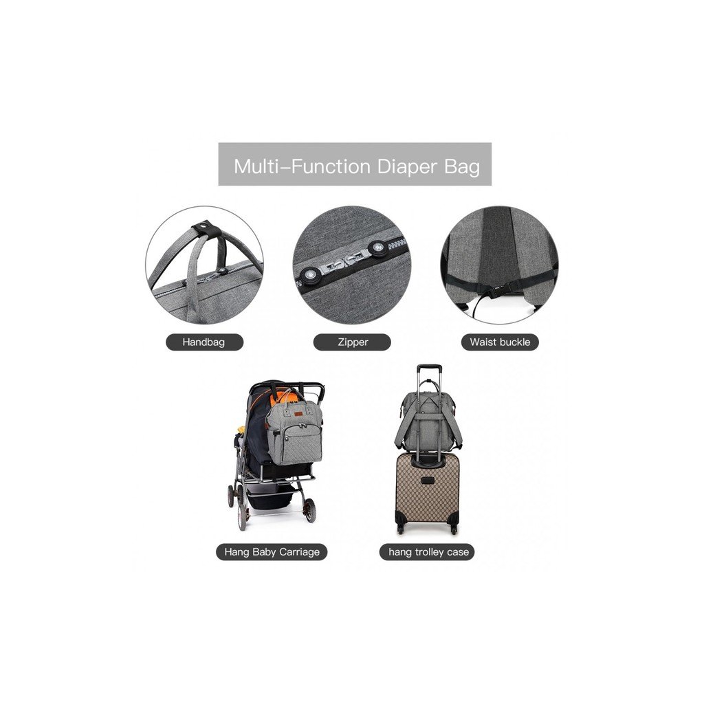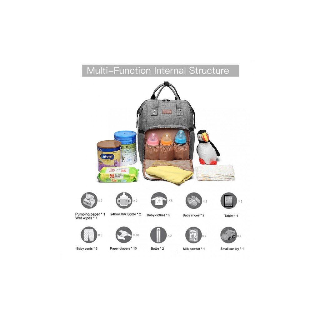 Batoh je prispôsobený potrebám mamičiek, ktoré potrebujú mať so sebou všetko, čo ich dieťa vyžaduje. Najmä ak sú na prechádzke, či práve cestujú. Vnútro batohu je priestranné a veľké. Uschová väčšie predmety ako hračky, plienky, nádoby sušeného mlieka ale aj vaše osobné veci. Predné vonkajšie vrecko je určené na 3 fľašky s pitím. Väčšiu záťaž odľahčia mäkké vystužené popruhy na ramená. Batoh je z pevne tkanej textílie, ktorá je odolná voči preťaženiu. Uzatvára sa zipsom a možno ho nosiť aj na kočíku špeciálnymi popruhmi.