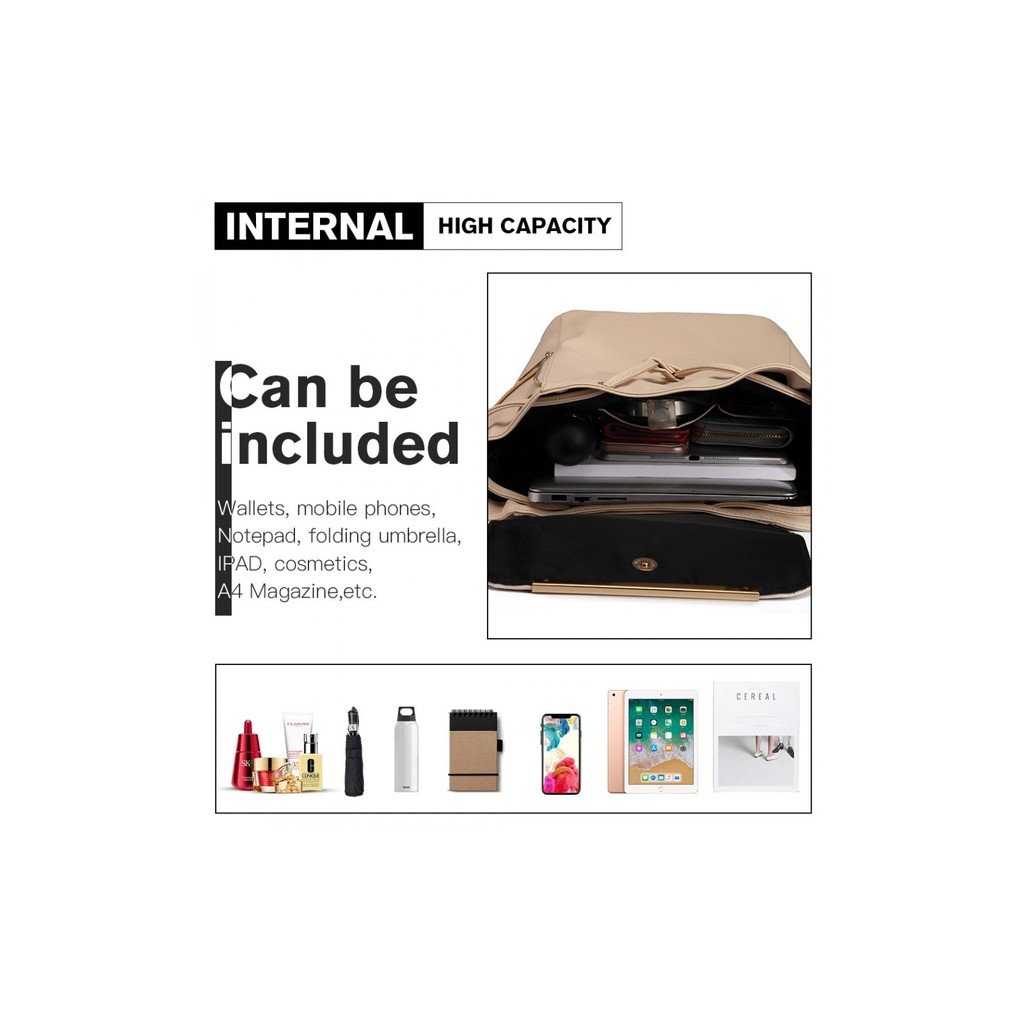 Batoh - eko kožený, štýlový, so zlatými doplnkami, béžový