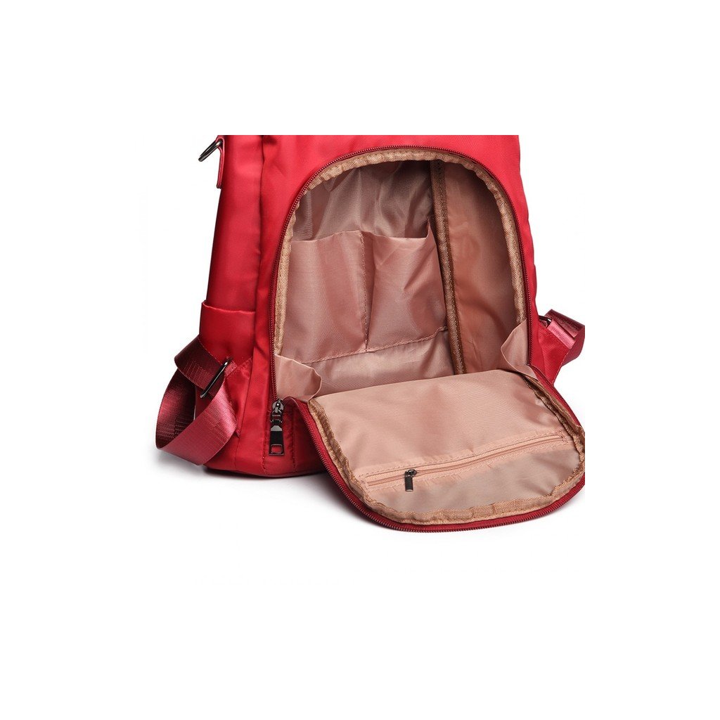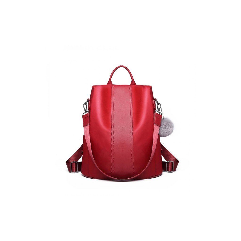 Nadčasový dizajn tohto ruksaku naozaj oceníte. Kombinácia nylonu a eko kože je tým, čo robí tento batoh výnimočný. Pom pom prívesok už je len doplnok, ktorý vnesie do elegancie veselosť. Batoh možno nosiť aj ako hobo kabelku na ramene. Má zipsový bezpečný otvor na chrbtovej časti, čo Vás poteší napríklad pri cestovaní. Drobnosti uschovajú malé vnútorné vrecká.