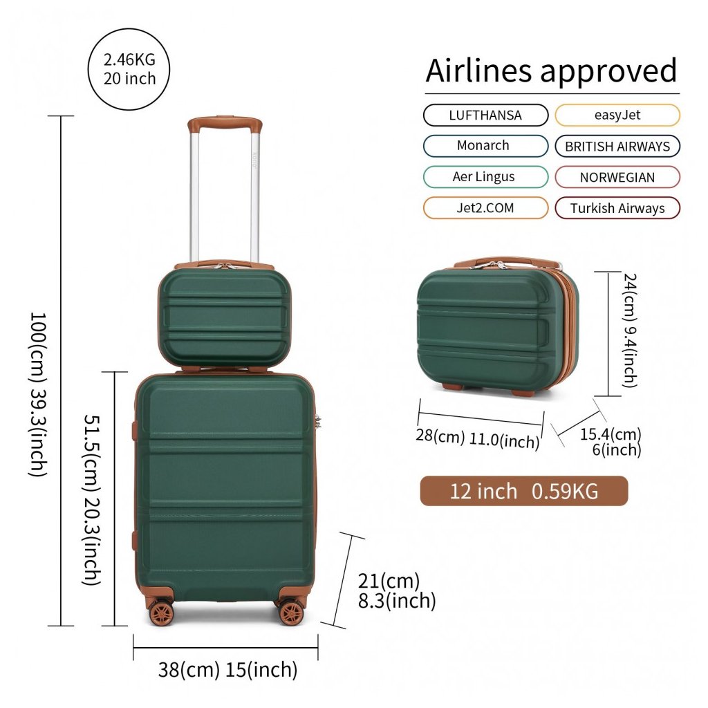 Set kufrov - KONO pastelový praktický na cesty, zelený