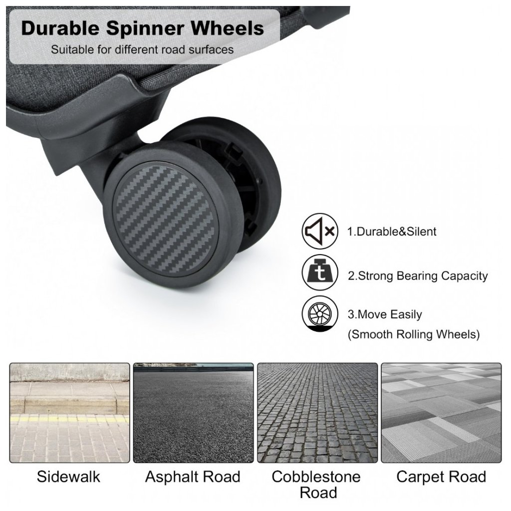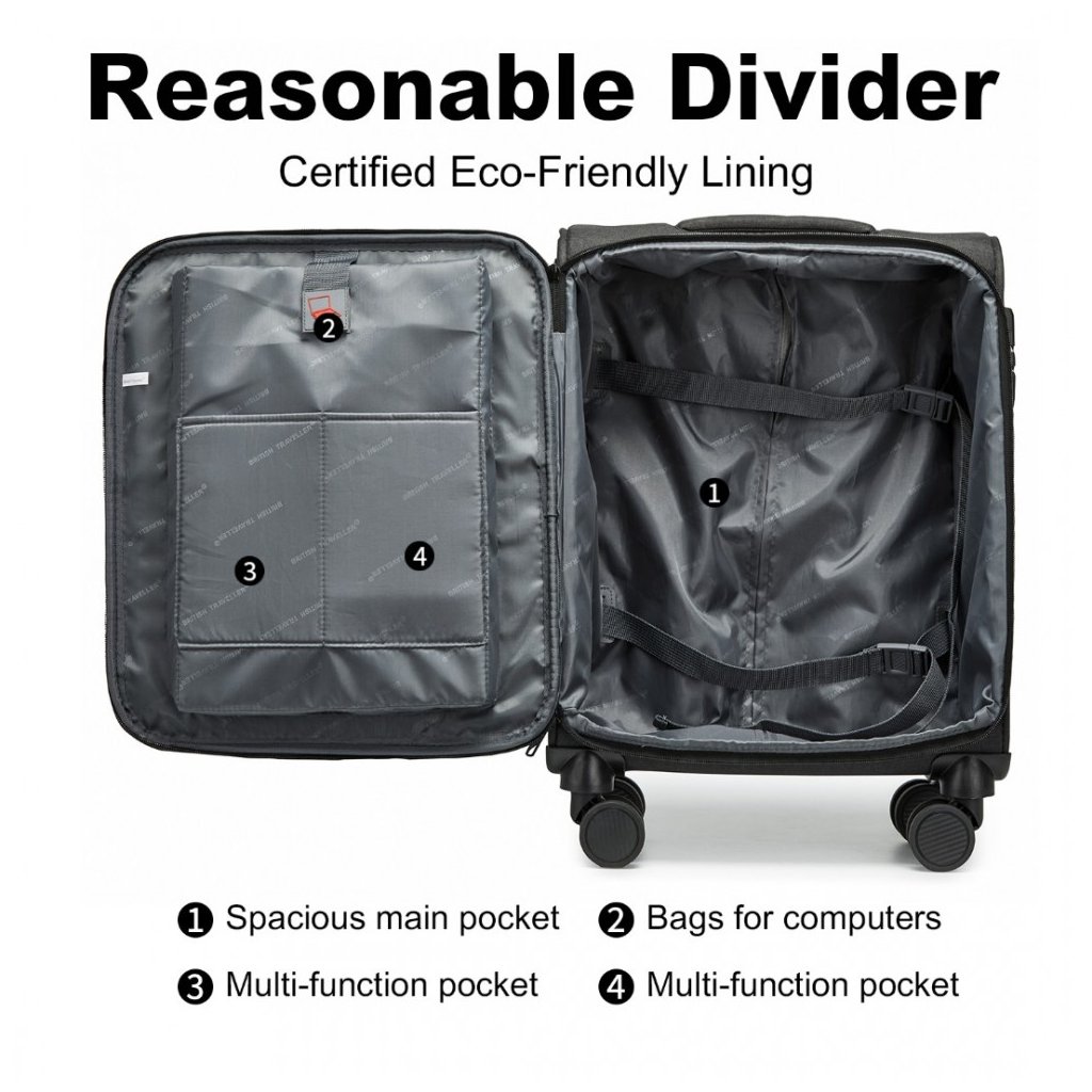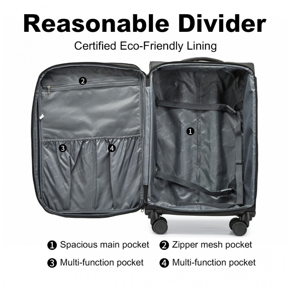 Každý kufor je vybavený teleskopickou hliníkovou rúčkou pre jednoduchú manipuláciu, 360-stupňovými tichými kolieskami pre hladký pohyb a bezpečnostným TSA zámkom pre maximálnu ochranu. Pevné ušká umožňujú pohodlné nosenie v ruke, zatiaľ čo zapínanie na zipsy zabezpečuje jednoduchý prístup k vašim veciam. Vyberte si túto sadu cestovných kufrov, ktorá spája štýl, funkčnosť a odolnosť – ideálna na každú cestu.