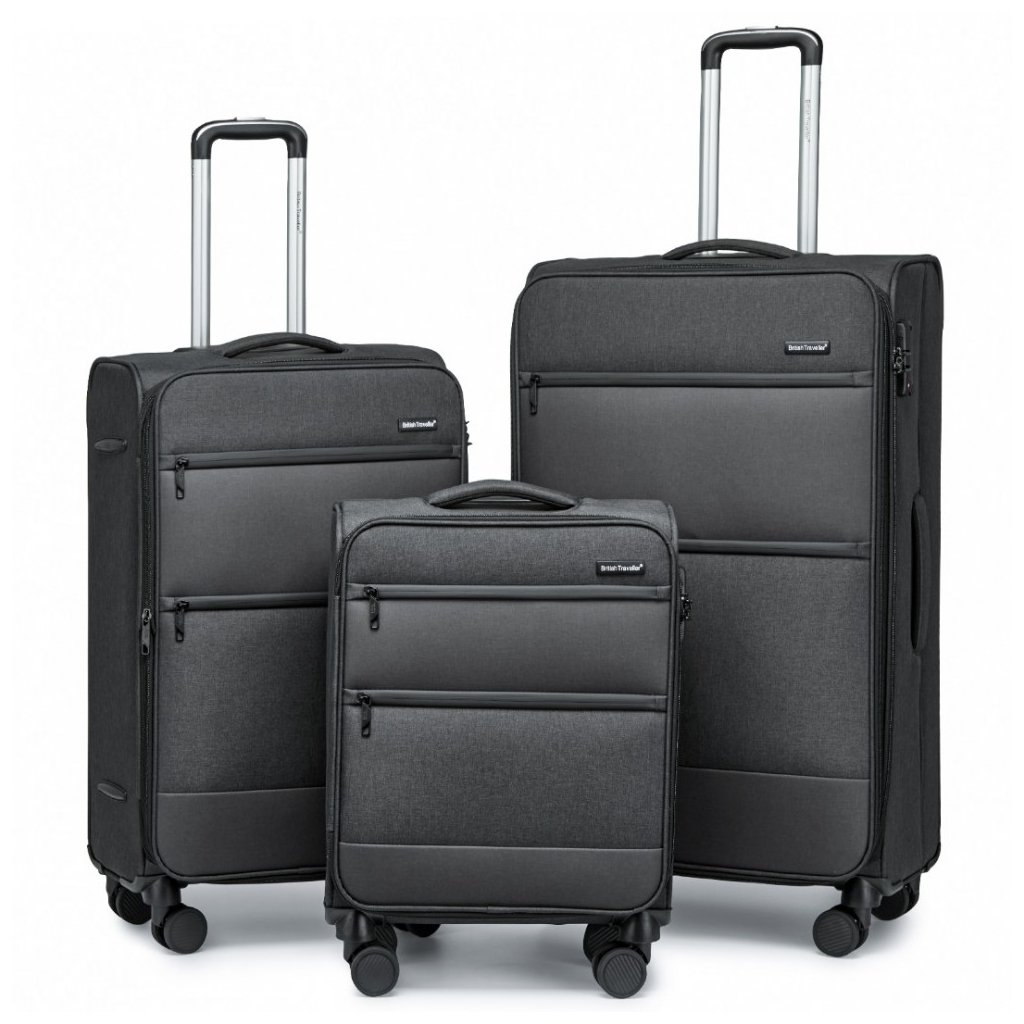 Set kufrov - British traveller, látkový s TSA zámkami, čierny