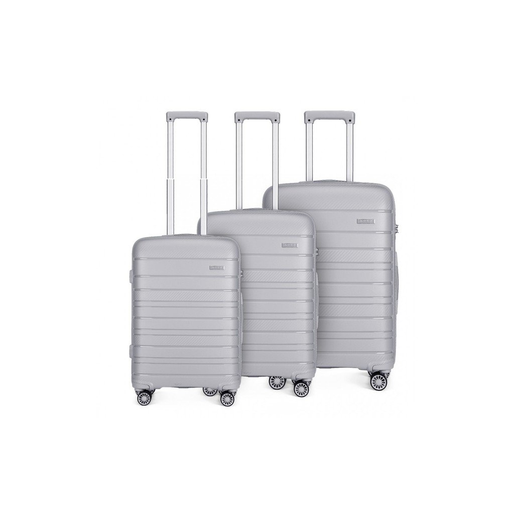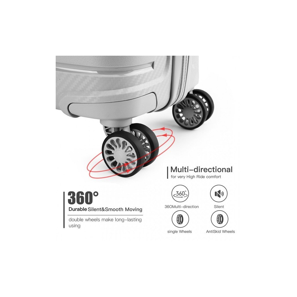 Kufre sú z pevného PP plastového materiálu, ktorý je pevný a odolný voči nárazom a poškodeniu. S batožinou sa narába prakticky a ľahko vďaka teleskopickej hliníkovej rúčke do 104 cm a 360 - stupňovým kolieskam. O bezpečnosť vašej batožiny sa naozaj nemusíte báť, nakoľko kufre disponujú so špeciálnym zámkom na kód. Vystužené vnútro je dokonale prispôsobené pre vašu batožinu, ktorú zaistíte gumovými páskami. Kozmetické drobnosti či iné technologické vecičky možno vložiť do zipsového priečinku.