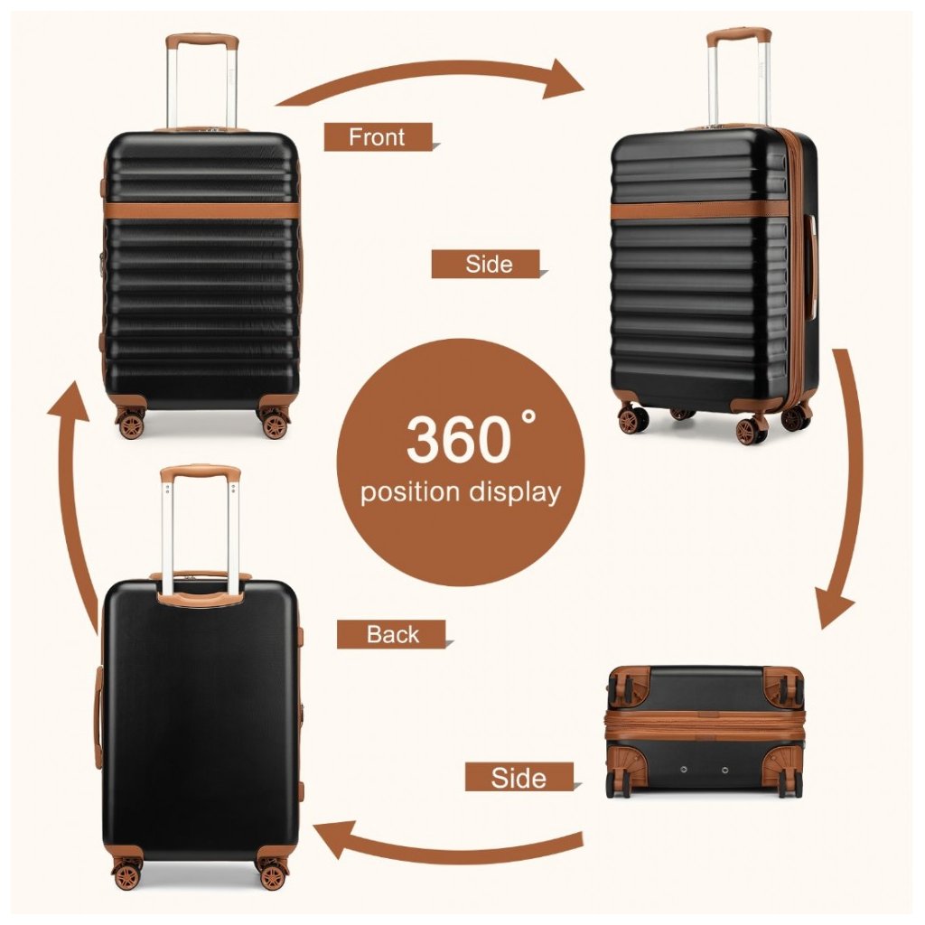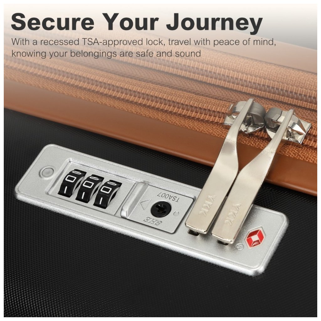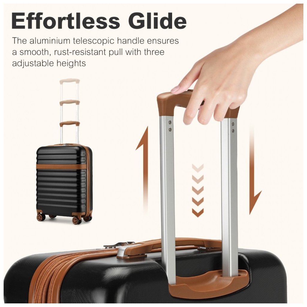 Elegantný a univerzálny čierny set kufrov, ktorý sa hodí na každú cestu. Vyrobený z ľahkého a odolného polykarbonátu a ABS materiálu, zabezpečuje maximálnu ochranu pre vaše veci. Všetky kufre sú rozšíriteľné o 15 %, čo vám poskytuje flexibilitu pri balení. Teleskopická hliníková rúčka, 360-stupňové kolieska a bezpečnostný zámok TSA zabezpečujú pohodlné a bezpečné cestovanie. S kapacitou 40 litrov a váhou 2,55 kg je malý kufor ideálny na kratšie výlety, stredný kufor má kapacitu 68 litrov a váži 3,45 kg, zatiaľ čo veľký kufor poskytuje 97 litrov priestoru a váži 4,38 kg. Čierna farba dodáva setu sofistikovaný a profesionálny vzhľad, vhodný pre každú príležitosť.