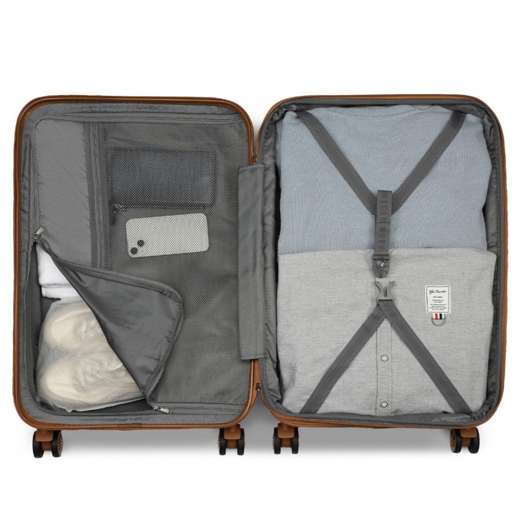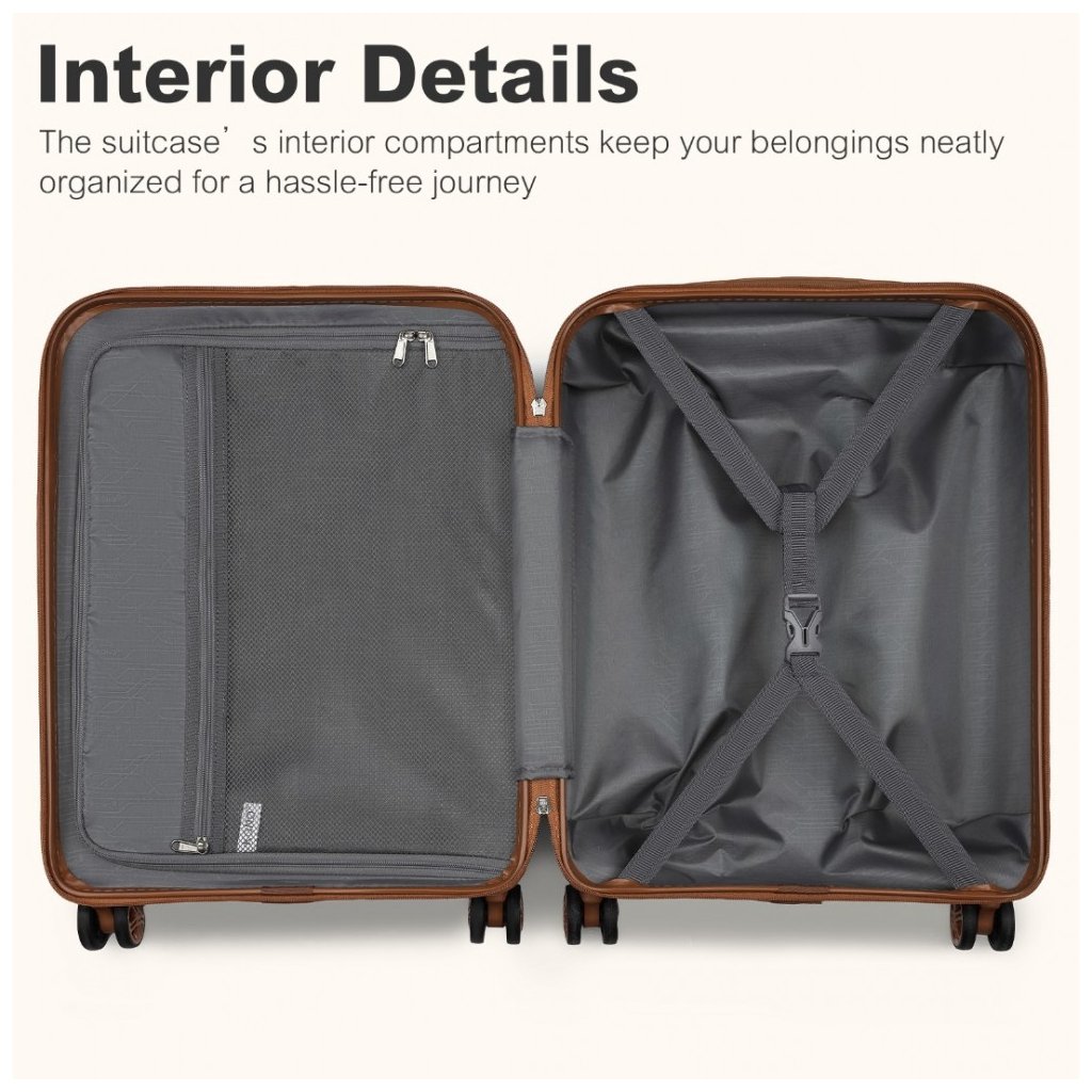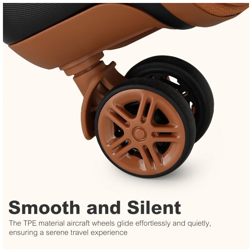 Elegantný a univerzálny čierny set kufrov, ktorý sa hodí na každú cestu. Vyrobený z ľahkého a odolného polykarbonátu a ABS materiálu, zabezpečuje maximálnu ochranu pre vaše veci. Všetky kufre sú rozšíriteľné o 15 %, čo vám poskytuje flexibilitu pri balení. Teleskopická hliníková rúčka, 360-stupňové kolieska a bezpečnostný zámok TSA zabezpečujú pohodlné a bezpečné cestovanie. S kapacitou 40 litrov a váhou 2,55 kg je malý kufor ideálny na kratšie výlety, stredný kufor má kapacitu 68 litrov a váži 3,45 kg, zatiaľ čo veľký kufor poskytuje 97 litrov priestoru a váži 4,38 kg. Čierna farba dodáva setu sofistikovaný a profesionálny vzhľad, vhodný pre každú príležitosť.
