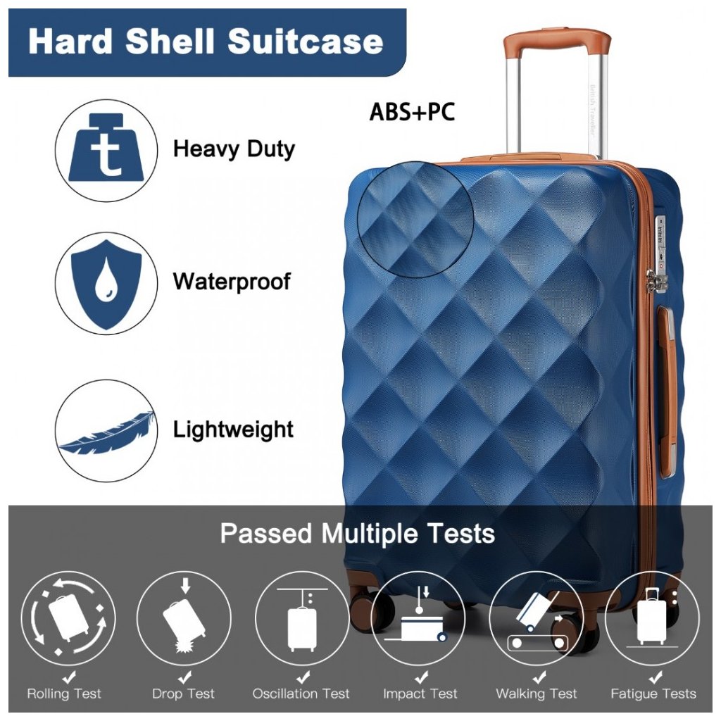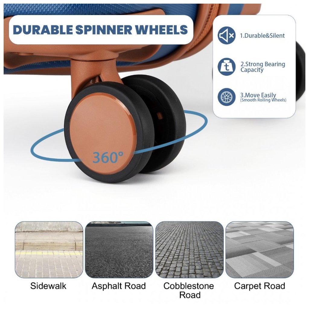 Kufre sú vyrobené z odolných materiálov, konkrétne z ABS a polykarbonátu, čo zabezpečuje ich ľahkosť a odolnosť voči náročným podmienkam cestovania. Pogumované kolečká zabezpečujú plynulý a ľahký pohyb na rôznych povrchoch, a teleskopická rúčka umožňuje ľahkú manipuláciu s kufrom.