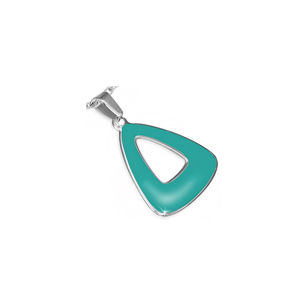 Set retiazky a náušníc z chirurgickej ocele zelenej farby v tvare trojuholníka. Chirurgická oceľ, z ktorej je celý set vyrobený, zaručuje jeho dlhú životnosť. Základná dĺžka retiazky je 45 cm. Podľa Vašich individuálnych potrieb si však viete vybrať najvhodnejší variant dĺžky retiazky. Veľmi aktuálny geometrický tvar trojuholníka je použitý na náušniciach aj na prívesku. Farba ako aj tvar setu náušníc a prívesku z chirurgickej ocele zaručujú jeho ľahkú kombinovateľnosť. Použiť sa dá k elegantným spoločenským šatám, ale aj ku každodennému outfitu. Ženy všetkých vekových kategórii ocenia jedinečnosť a farebnosť geometrického tvaru tohto setu z chirurgickej ocele.