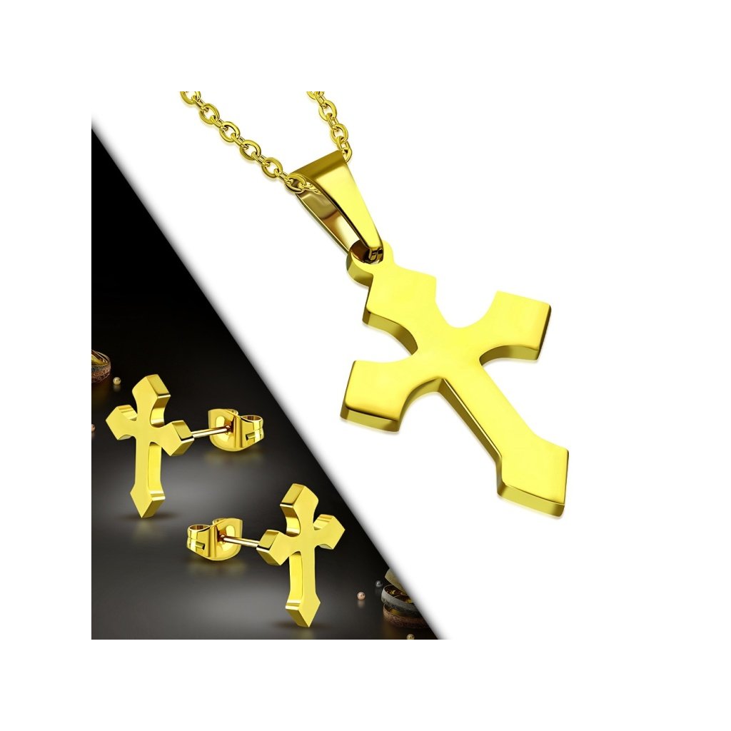 Set z chirurgickej ocele - prívesok a náušnice v tvare kríža zlatom prevedení
