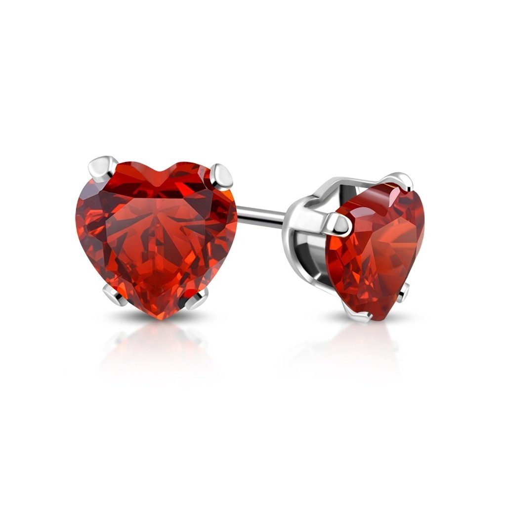 Dámske náušnice s brúseným očkom v tvare srdca z chirurgickej ocele - Red Kiss