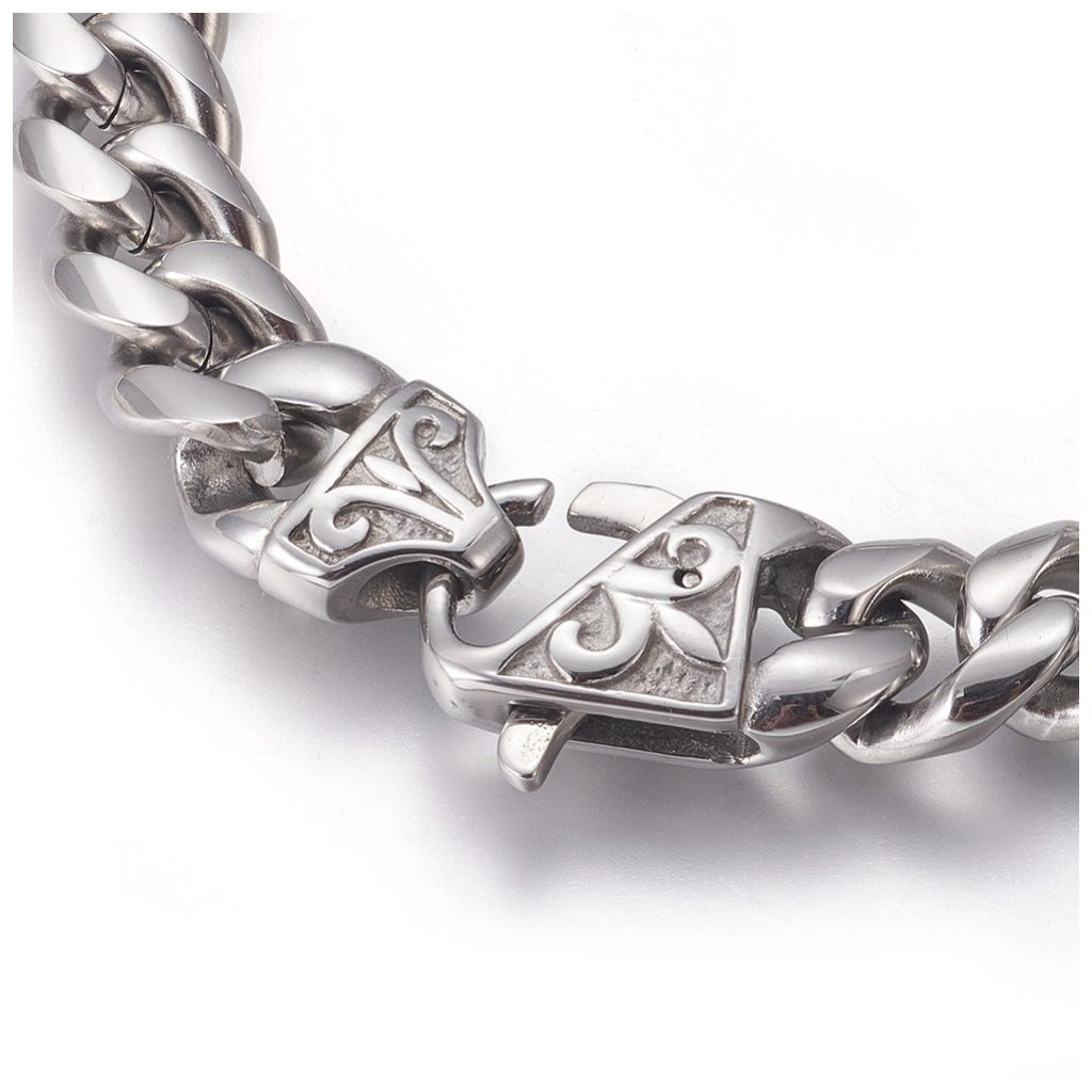 Tento elegantný pánsky náramok Eliot je vyrobený z kvalitnej chirurgickej ocele, ktorá zaručuje jeho trvácnosť a odolnosť. So svojou dĺžkou 22 cm a masívnym dizajnom je ideálnou voľbou pre mužov, ktorí hľadajú výrazný, ale sofistikovaný doplnok. Náramok je zakončený bezpečnostným zapínaním s detailným vzorom, ktorý pridáva na jeho jedinečnosti a štýle.