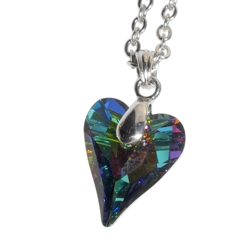 Dámsky šperk srdiečko patrí medzi romantické a veľmi obľubené prívesky. Srdiečko je krásny darček nie len na Valentina ale na každú príležitosť. Prívesok v Swarovski v tvare Wild Heart vyniká svojim zaujímavým tvarom a tak isto aj dokonalou farbou Crystal vitrail medium (zelená ) . Swarovski šperky majú jedinečný výbrus a pri lome svetelných lúčov hrajú neuveriteľnými odtieňmi a farbami. Šperk je vhodný tak na rôzne príležitosti a samozrejme dá sa kombinovať a aj s náušnicami Swarovski. Retiazka a samozrejme všetky kovové časti na šperku sú z kvalitnej chirurgickej ocele.