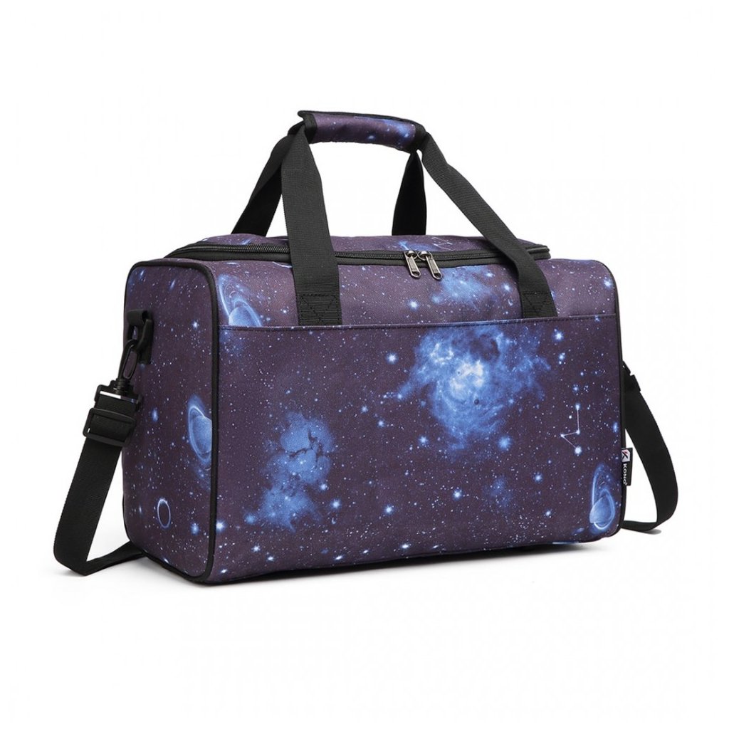 Taška - do ruky, na cesty unisex, fialová s vesmírnou potlačou