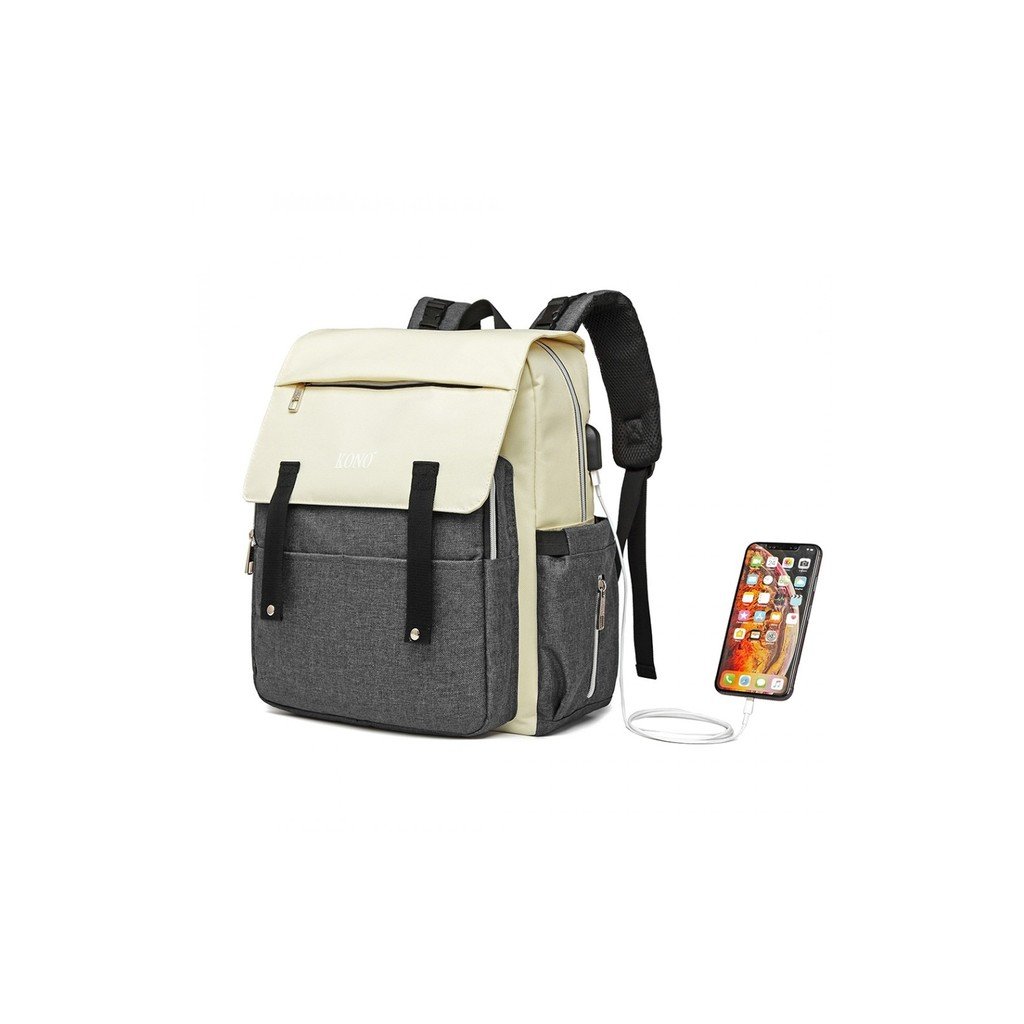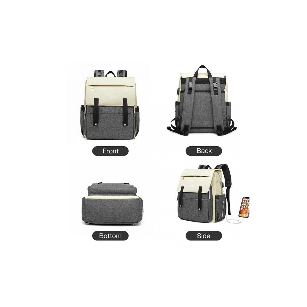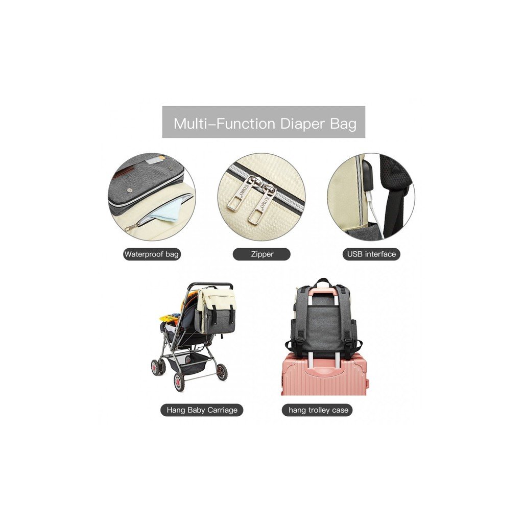 Batoh je prispôsobený potrebám mamičiek, ktoré potrebujú mať so sebou všetko, čo ich dieťa vyžaduje. Najmä, ak sú na prechádzke, či práve cestujú. Vnútro ruksaku je priestranné a veľké. Uschová väčšie predmety ako hračky, plienky, nádobu sušeného mlieka, oblečenie, ale aj vaše osobné veci. Predné vonkajšie vrecko je určené na 3 fľašky s pitím. Ďalšie vonkajšie vrecká uschovajú rôzne drobnosti. Väčšiu záťaž odľahčia mäkké vystužené popruhy na ramená. Batoh je z pevne tkanej nylonovej textílie, ktorá je odolná voči preťaženiu. Uzatvára sa zipsom a možno ho nosiť aj na kočíku špeciálnymi popruhmi. Navyše má tento ruksak špeciálne USB pripojenie, takže ani váš telefón neostane bez šťavy.