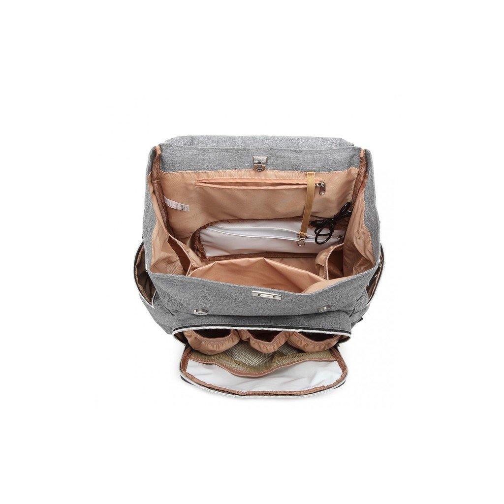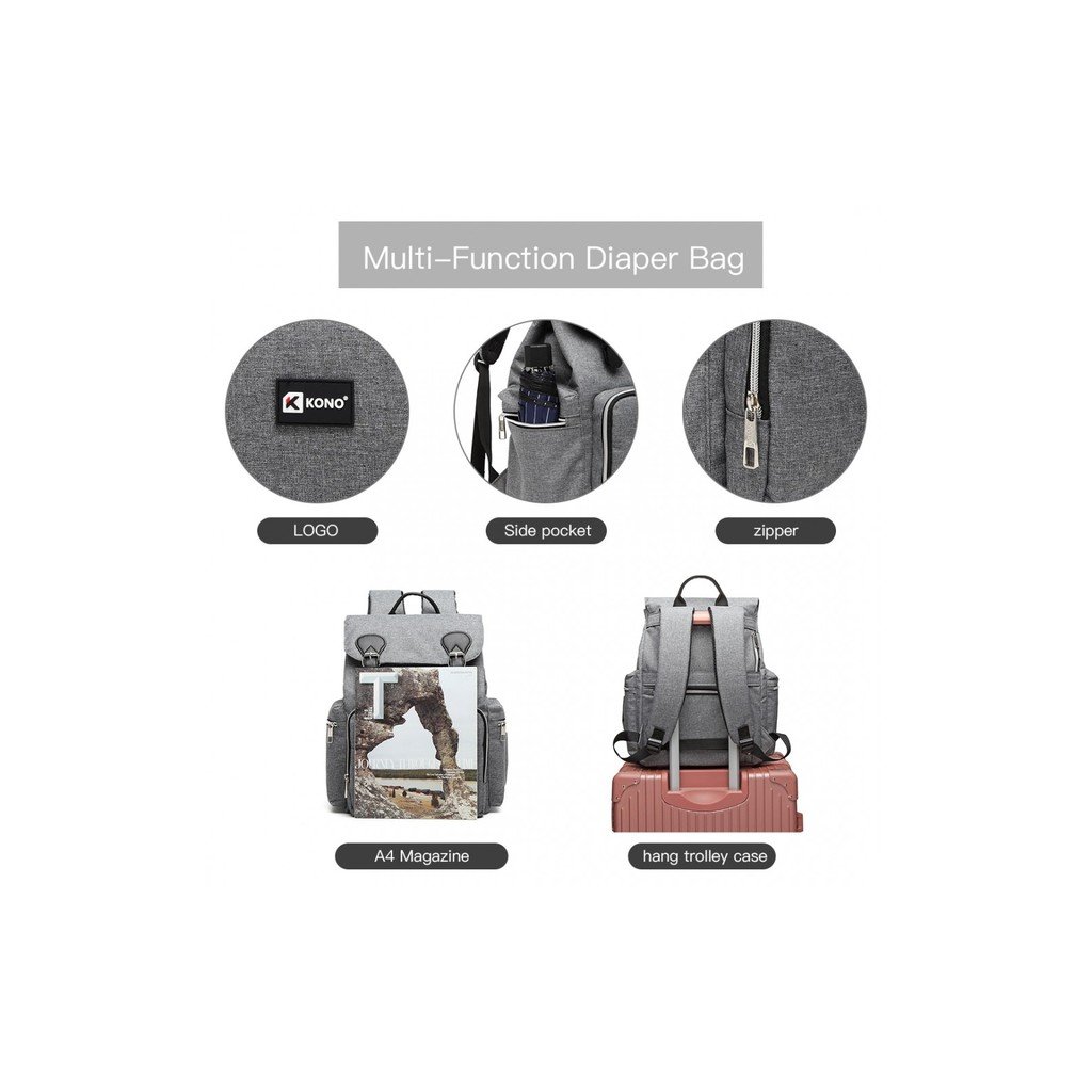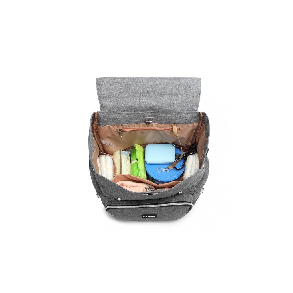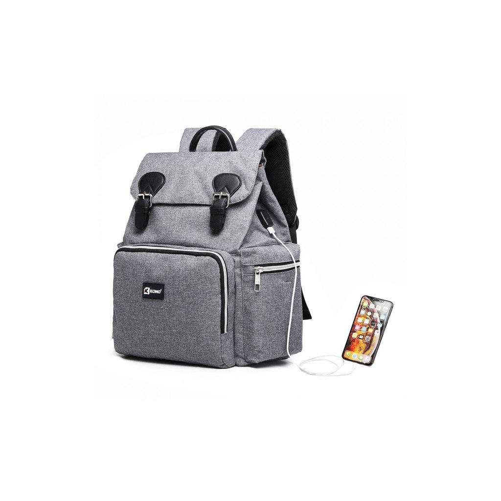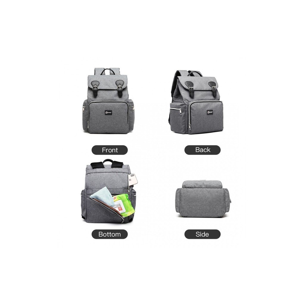 Batoh je prispôsobený potrebám mamičiek, ktoré potrebujú mať so sebou všetko, čo ich dieťa vyžaduje. Najmä, ak sú na prechádzke, či práve cestujú. Vnútro ruksaku je priestranné a veľké. Uschová väčšie predmety ako hračky, plienky, nádobu sušeného mlieka, oblečenie, ale aj vaše osobné veci. Predné vonkajšie vrecko je určené na 3 fľašky s pitím. Ďalšie vonkajšie vrecká uschovajú rôzne drobnosti. Väčšiu záťaž odľahčia mäkké vystužené popruhy na ramená. Batoh je z pevne tkanej nylonovej textílie, ktorá je odolná voči preťaženiu. Uzatvára sa cvokmi a ohybným zámkom. Navyše má tento ruksak špeciálne USB pripojenie, takže ani váš telefón neostane bez šťavy.