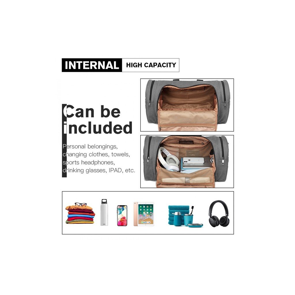 Prakticky sa zabaliť už nemôže byť nič hrozivé. S touto taškou od značky KONO to bude hračka. Cestovná taška disponuje s praktickou priestrannou priehradkou na oblečenie a iné väčšie veci, ďalej malými priehradkami na drobnosti. Pohodlne sa nosí dlhým popruhom na ramene. Taška za uzatvára zipsom a je ladená v unisex štýle.